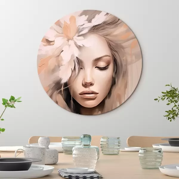 Runde Gemälde Frauenporträt mit einer Blume r46218