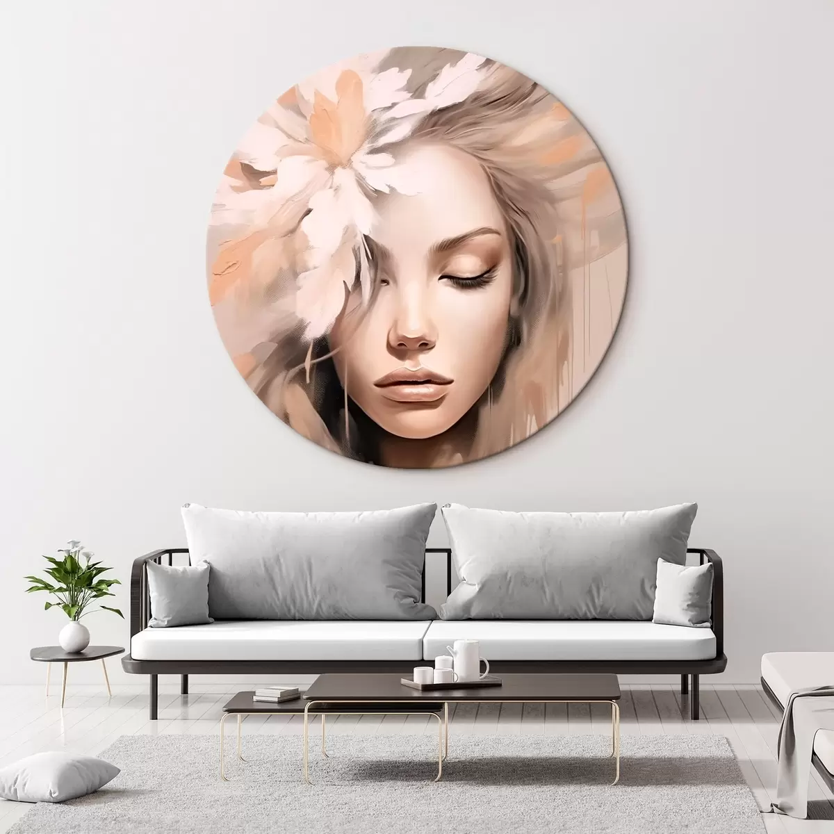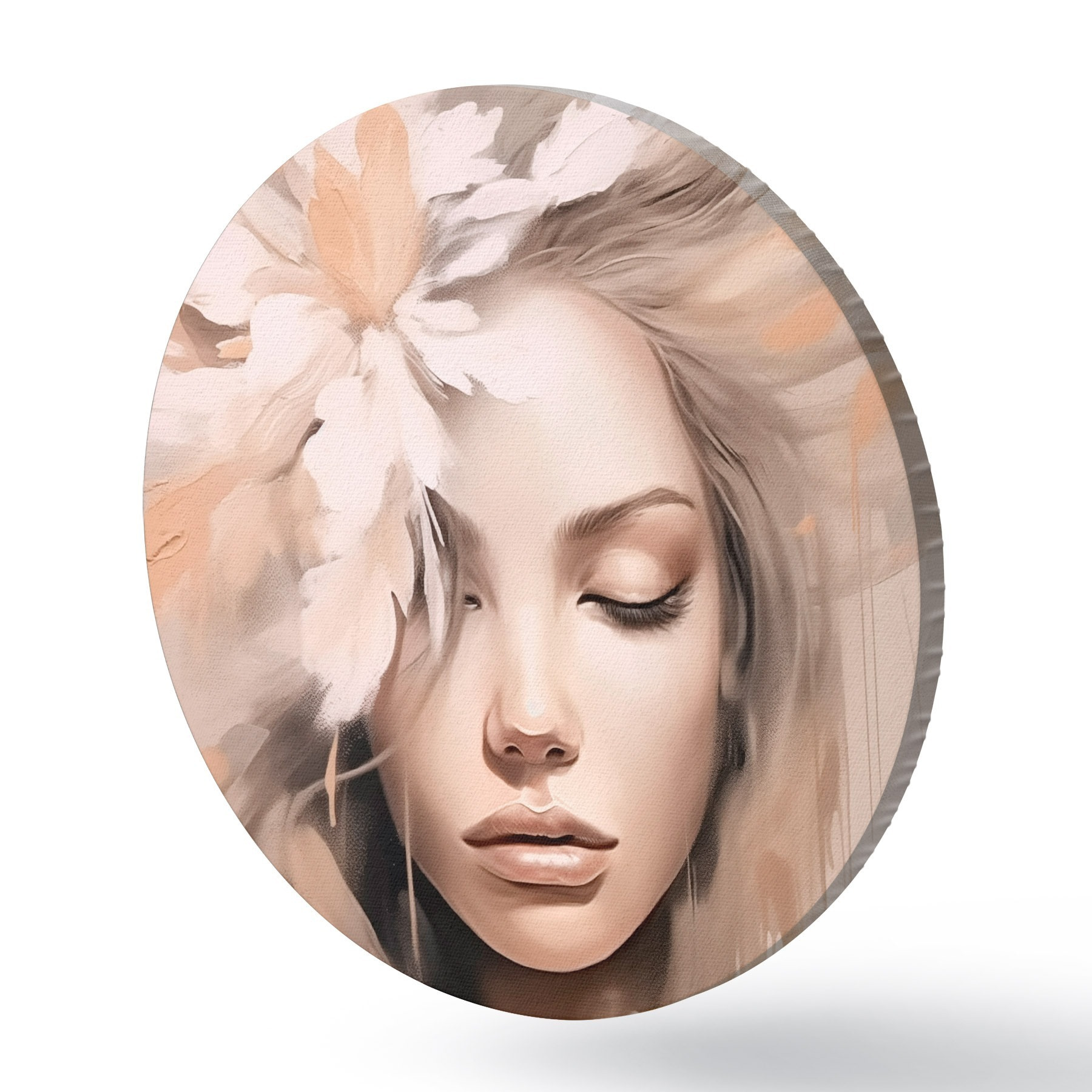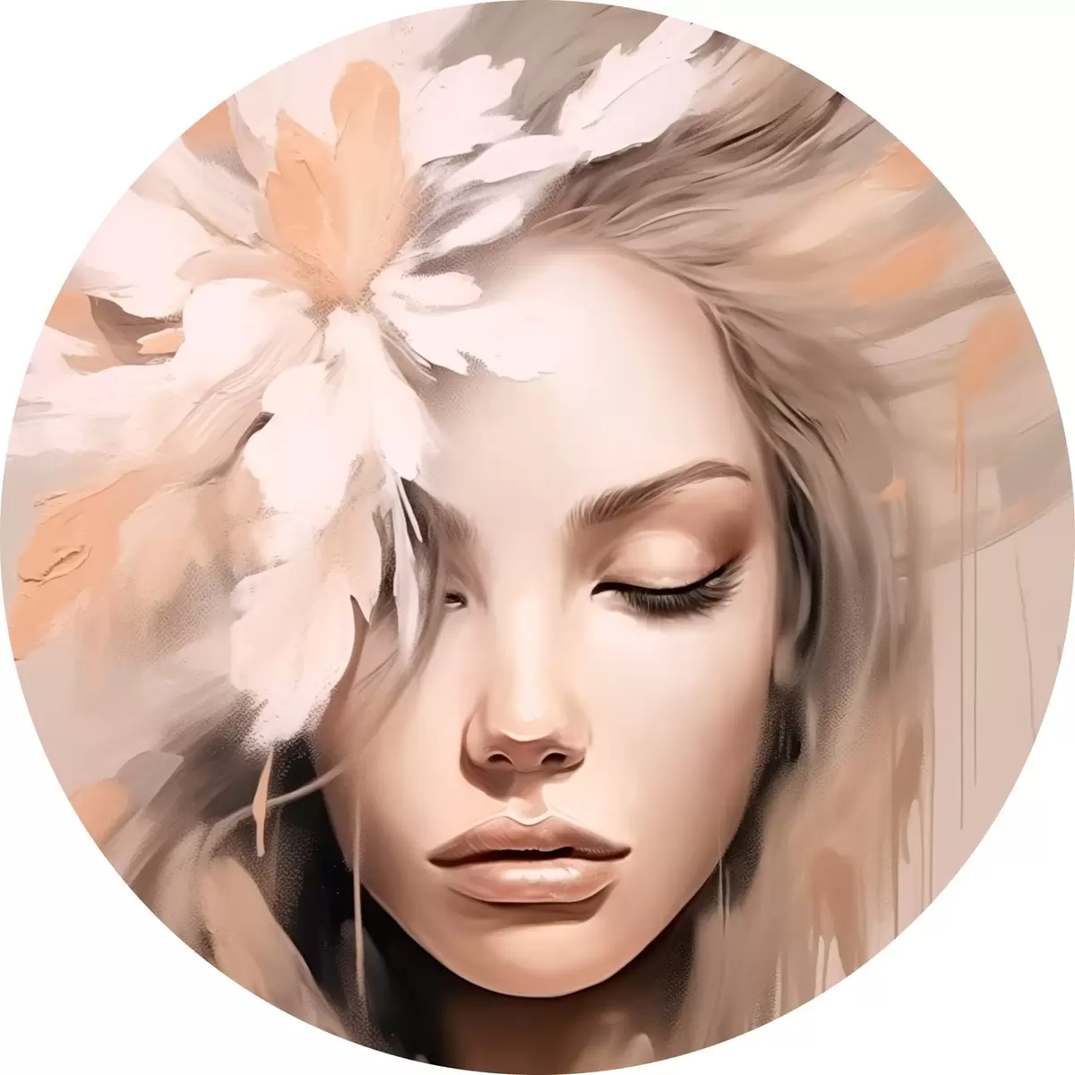 Runde Gemälde Frauenporträt mit einer Blume r46218