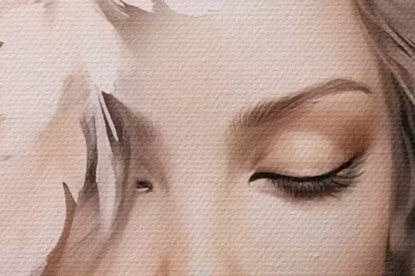 Das feine Fadengeflecht auf dieser Leinwand ähnelt der Oberfläche von professionellen Künstlerleinwänden.