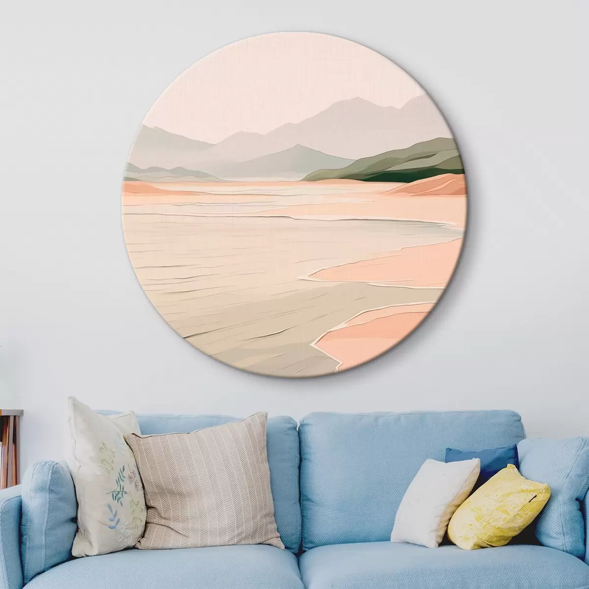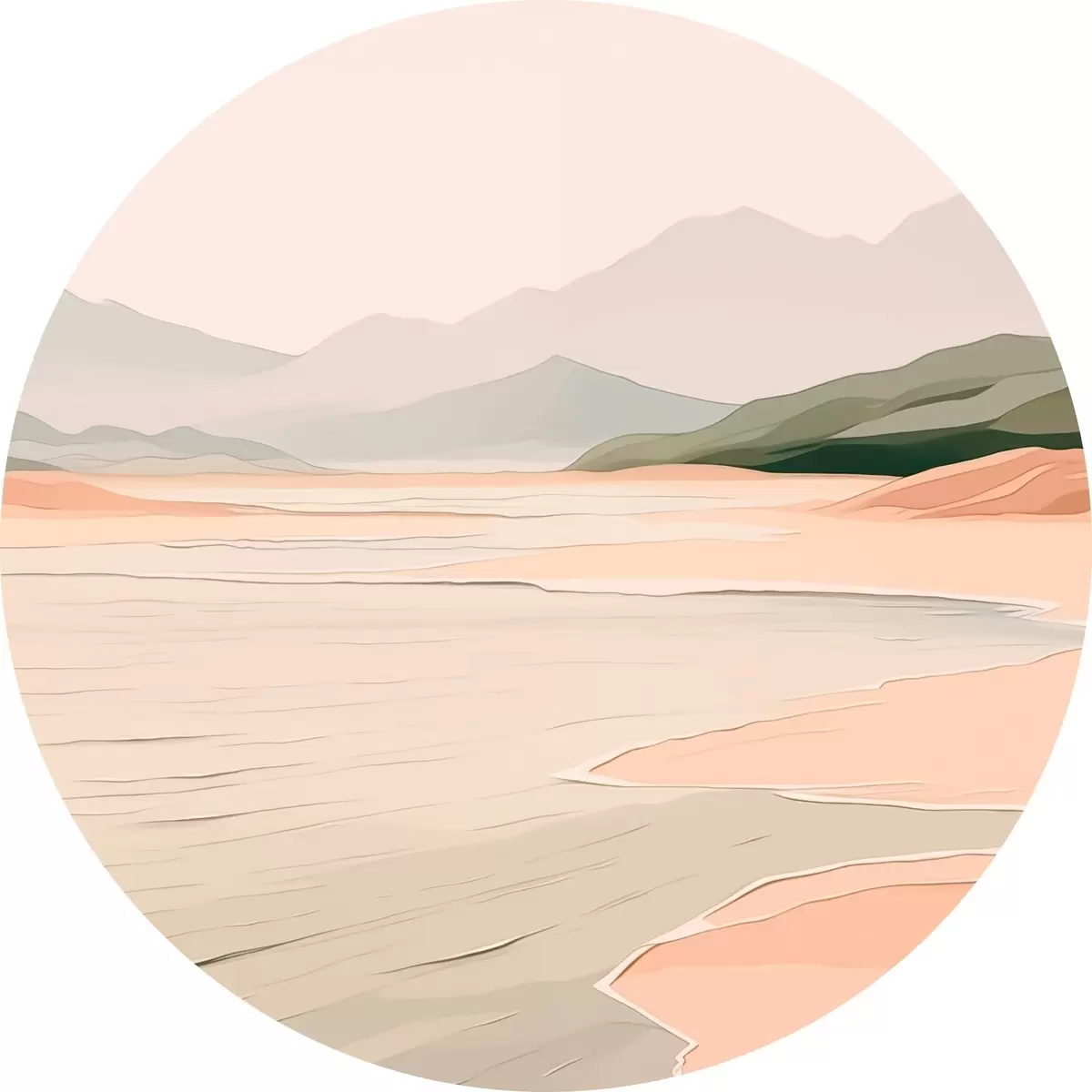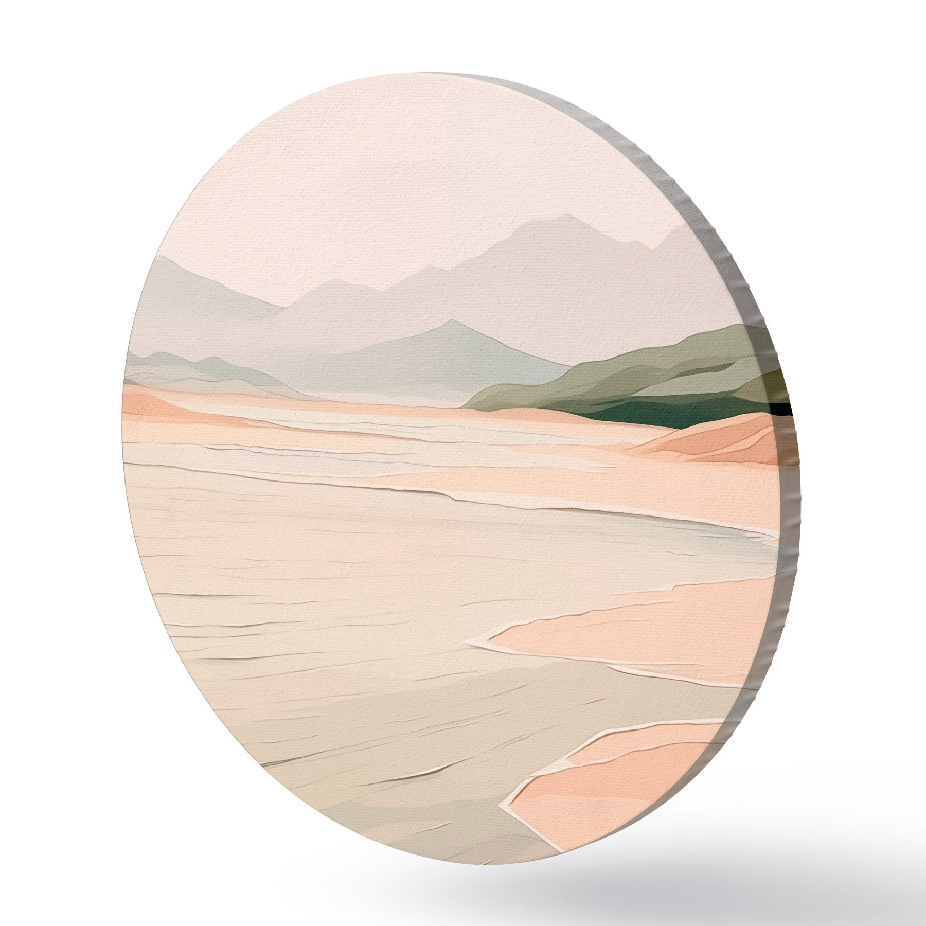 Runde Gemälde Minimalistische Landschaft mit Bergen und Ufer r46248