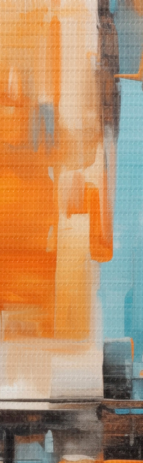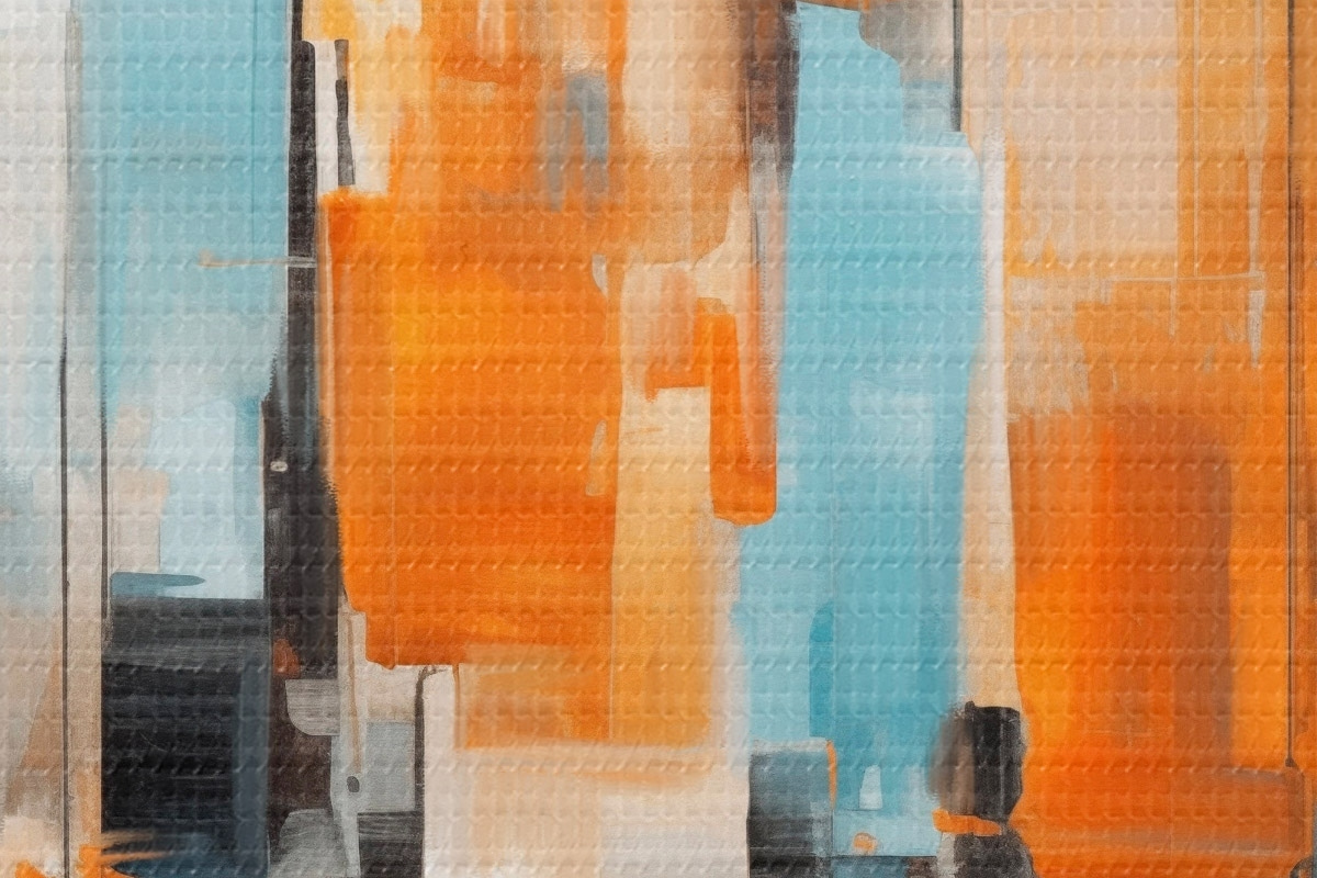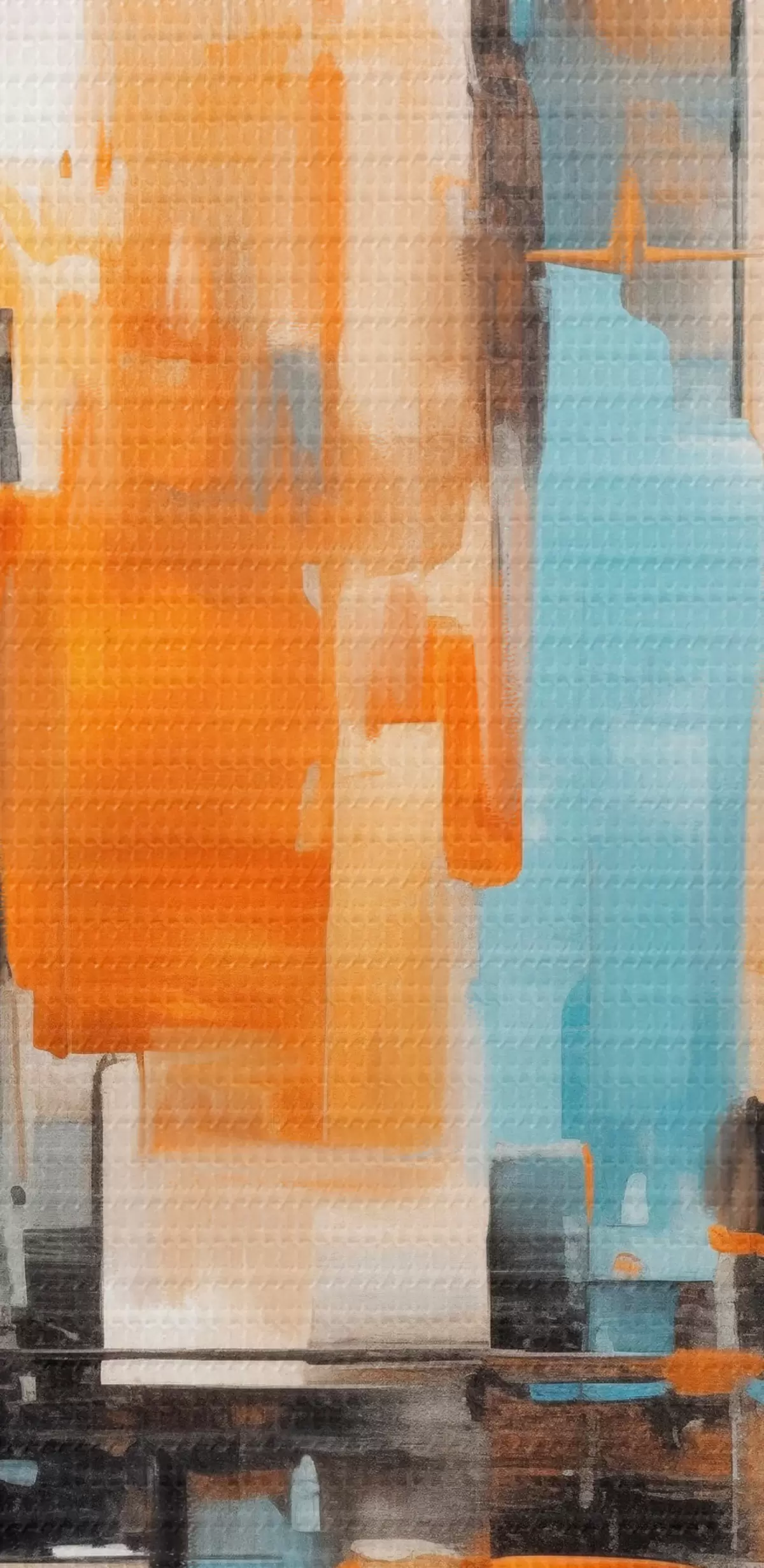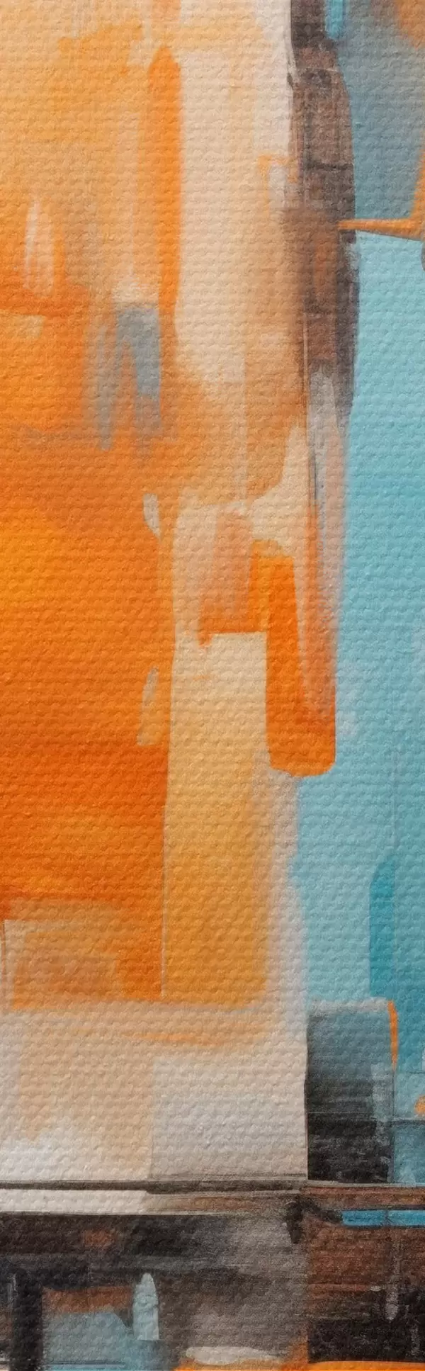 Bild Abstrakte Stadtlandschaft mit vertikalen Pinselstrichen in Orange-, Blau- und Weißtönen, Malstil Nr r46267
