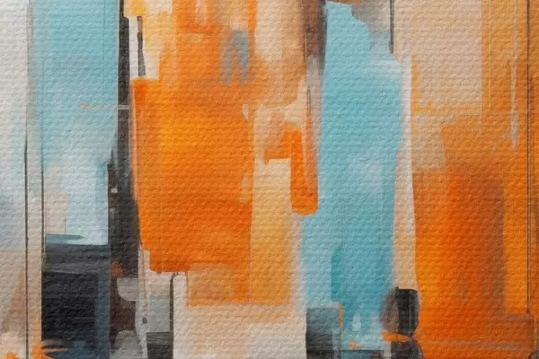Bild Abstrakte Stadtlandschaft mit vertikalen Pinselstrichen in Orange-, Blau- und Weißtönen, Malstil Nr r46267