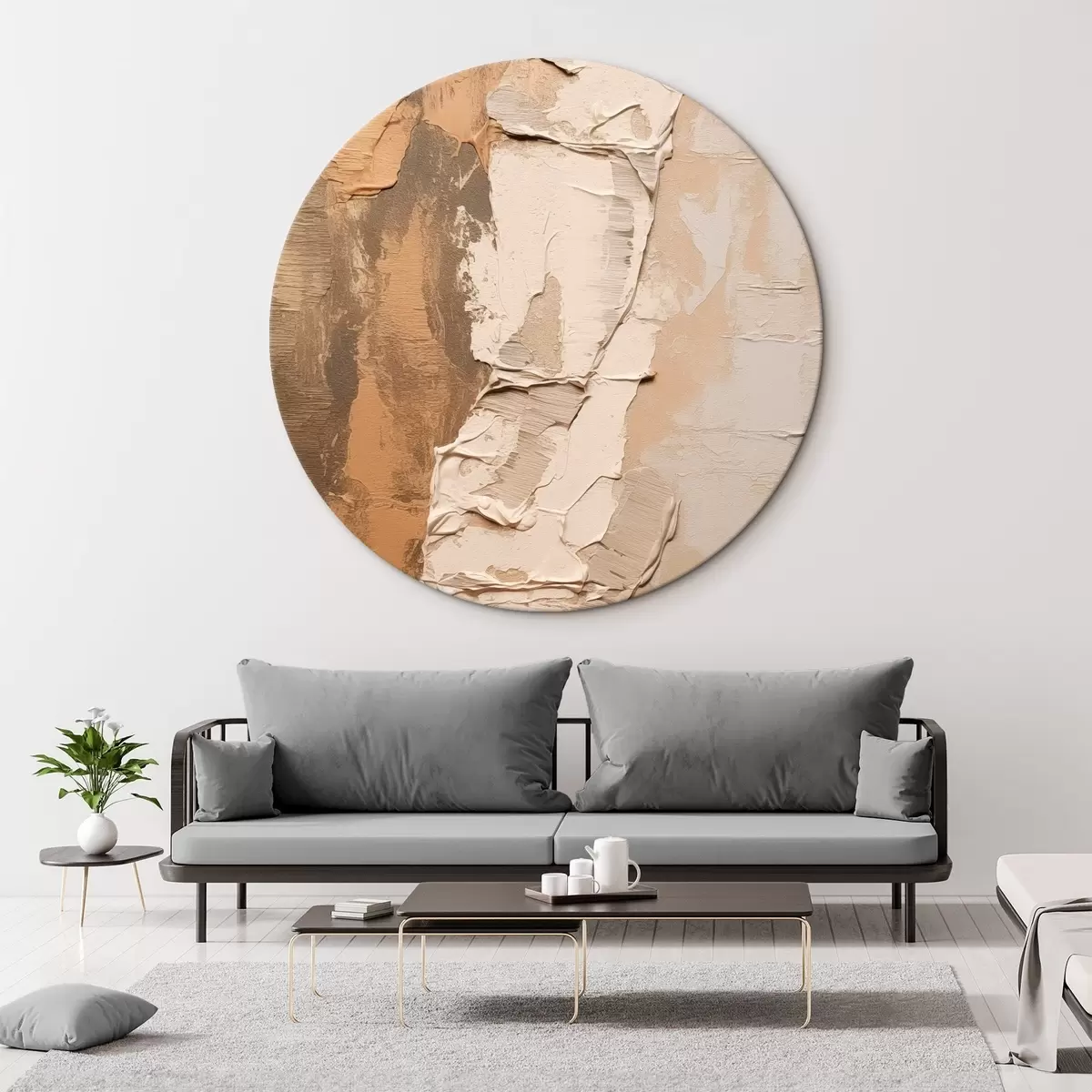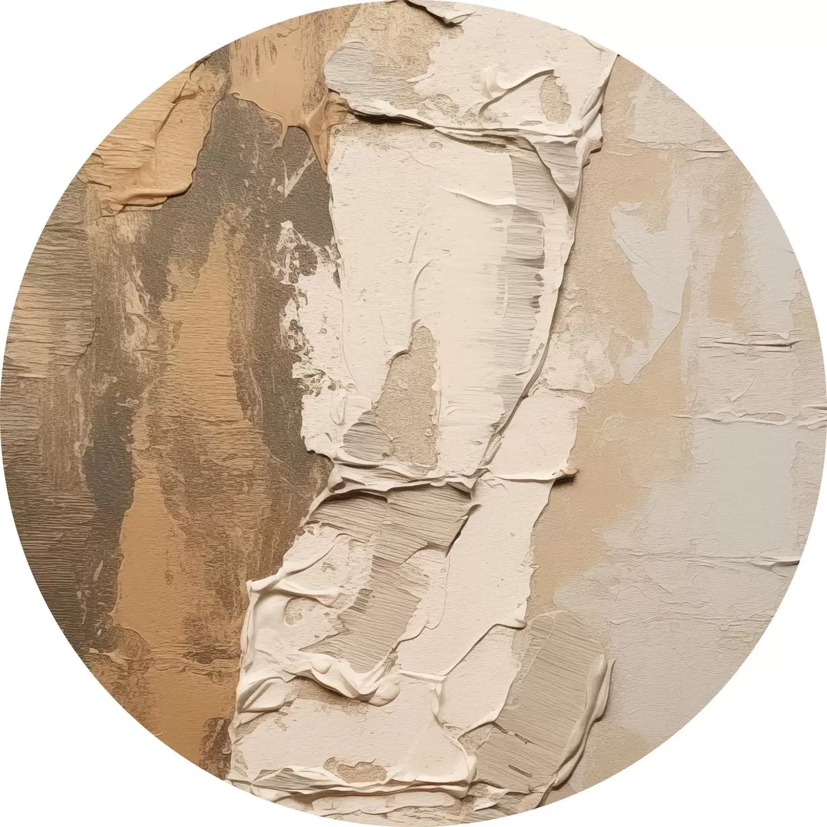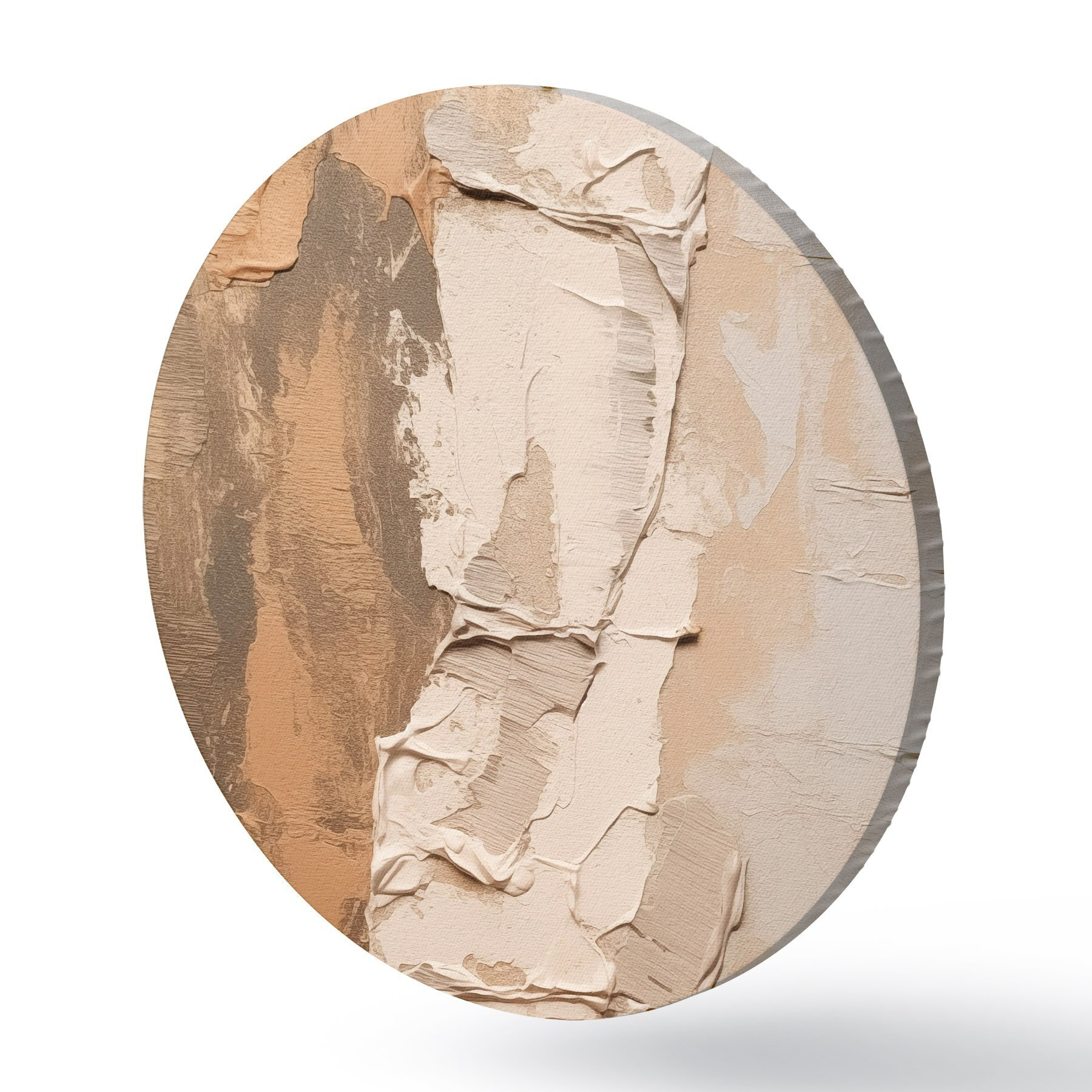 Runde Gemälde Abstrakte Malerei mit dicken Pinselstrichen, Beige- und Brauntönen, strukturierter Oberfläche und neutraler Farbpalette r46272