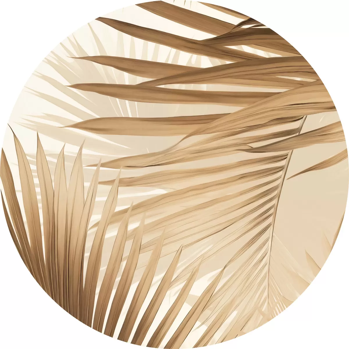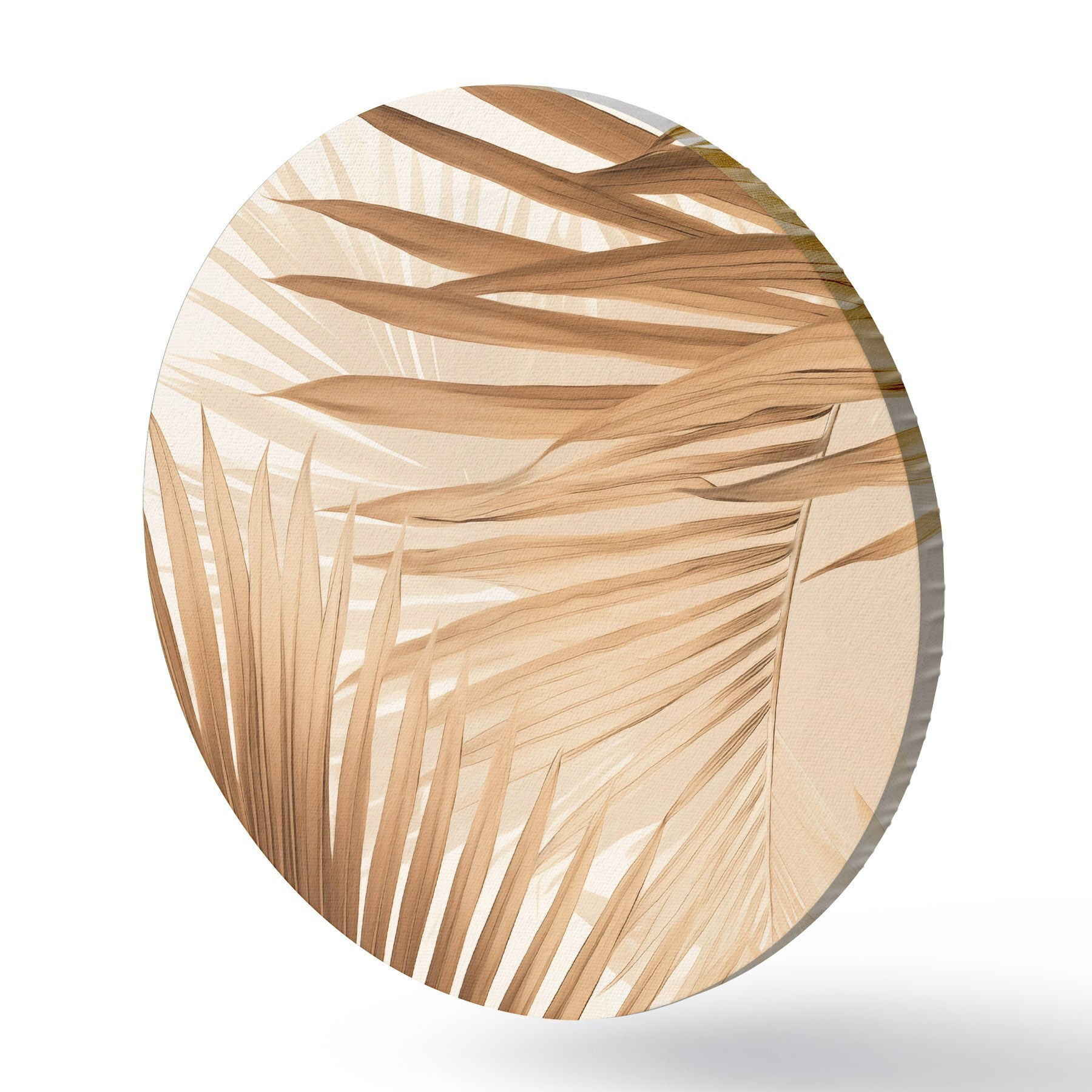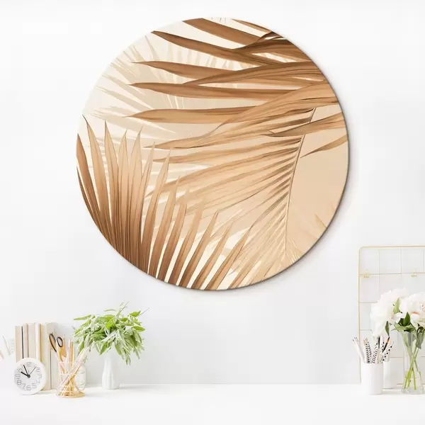 Runde Gemälde Abstrakte Palmblätter in Brauntönen, tropisch, botanisch, Natur, minimalistisch, elegant, modernes Design r46275