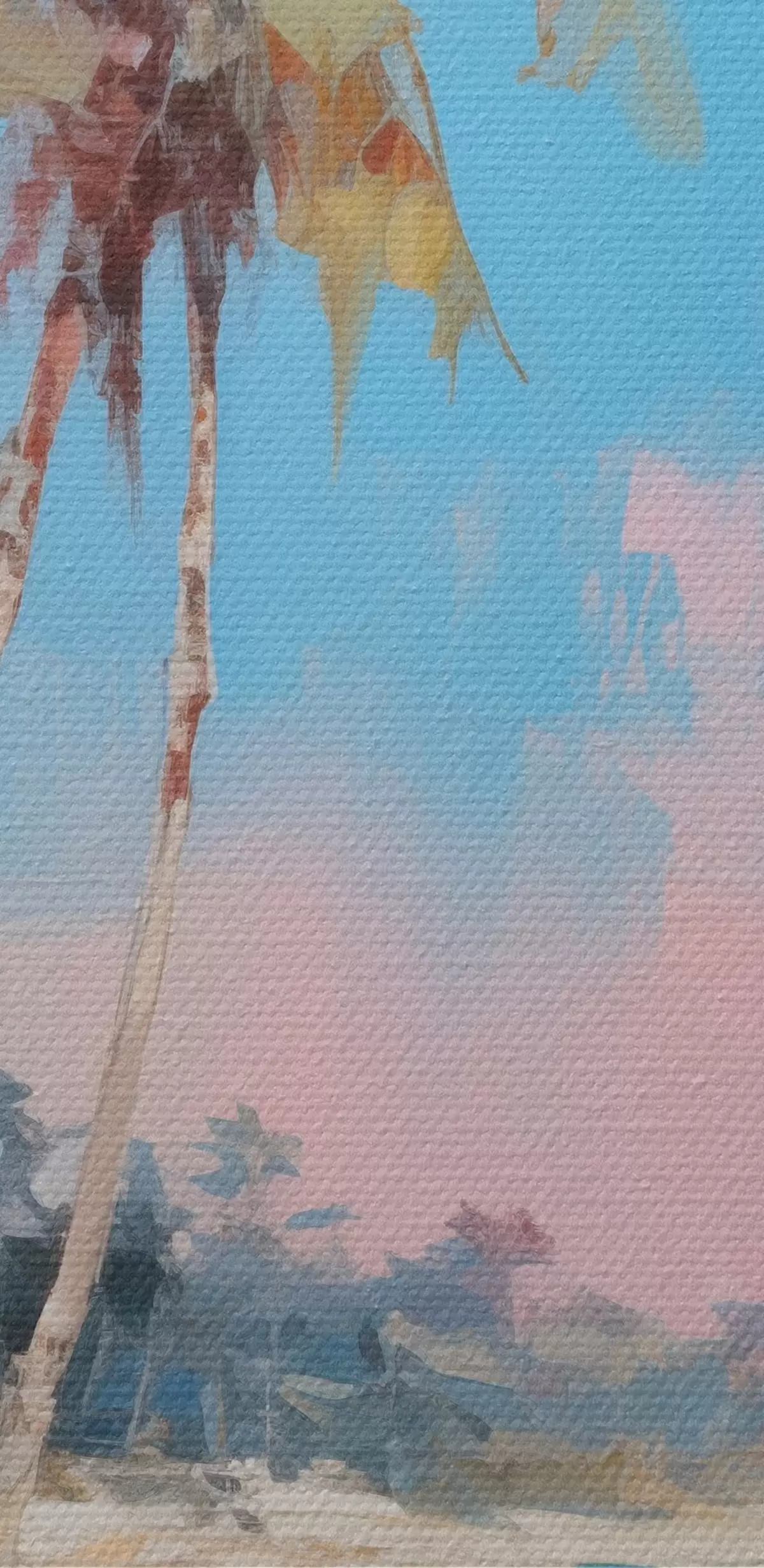 Das Gemälde kann sofort nach Erhalt aufgehängt werden. Das Gemälde wird auf einen 2 cm breiten Holzkeilrahmen aufgespannt.