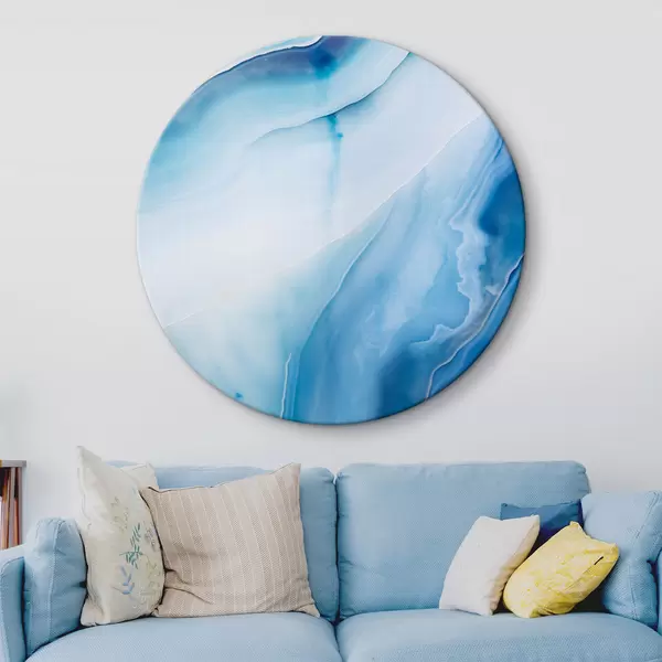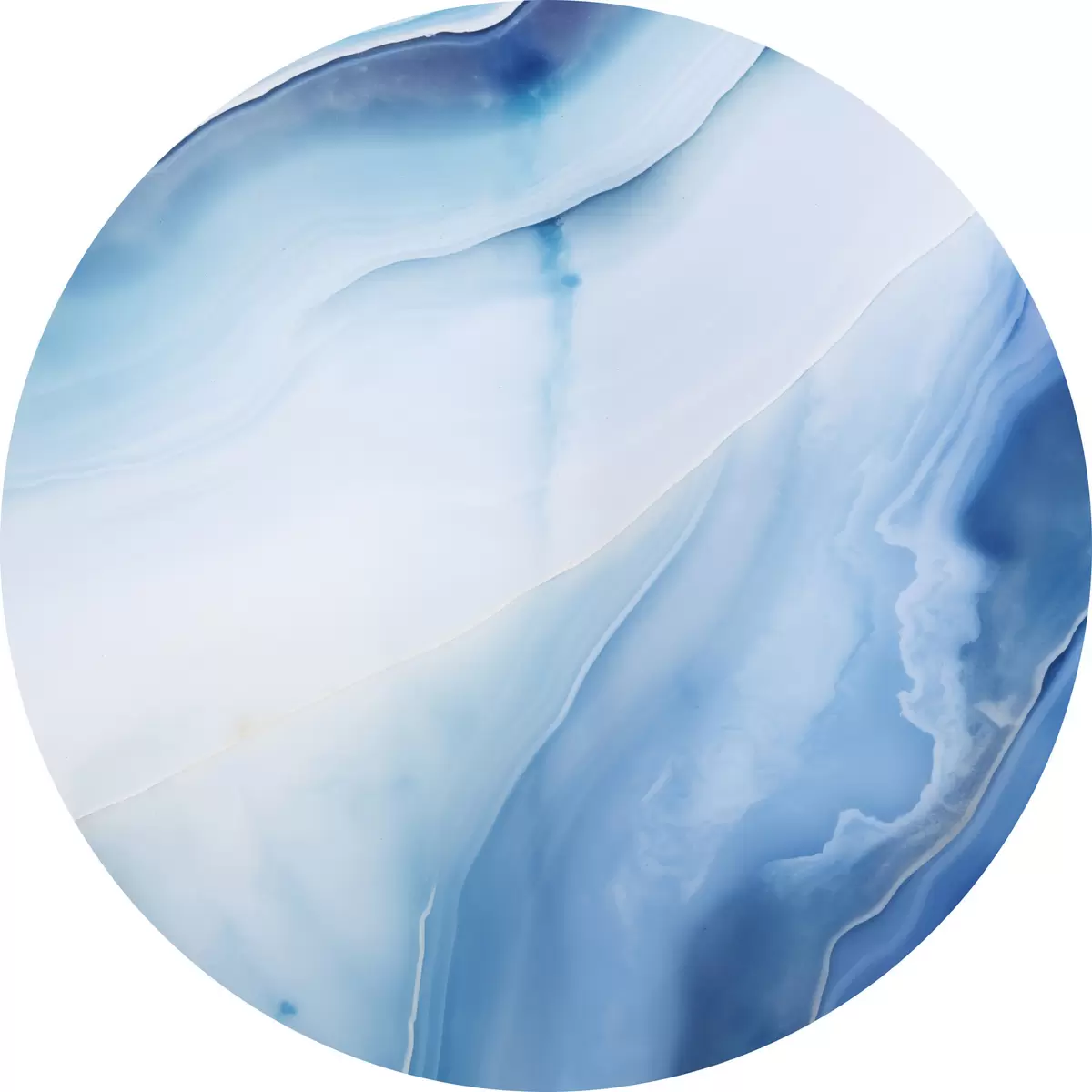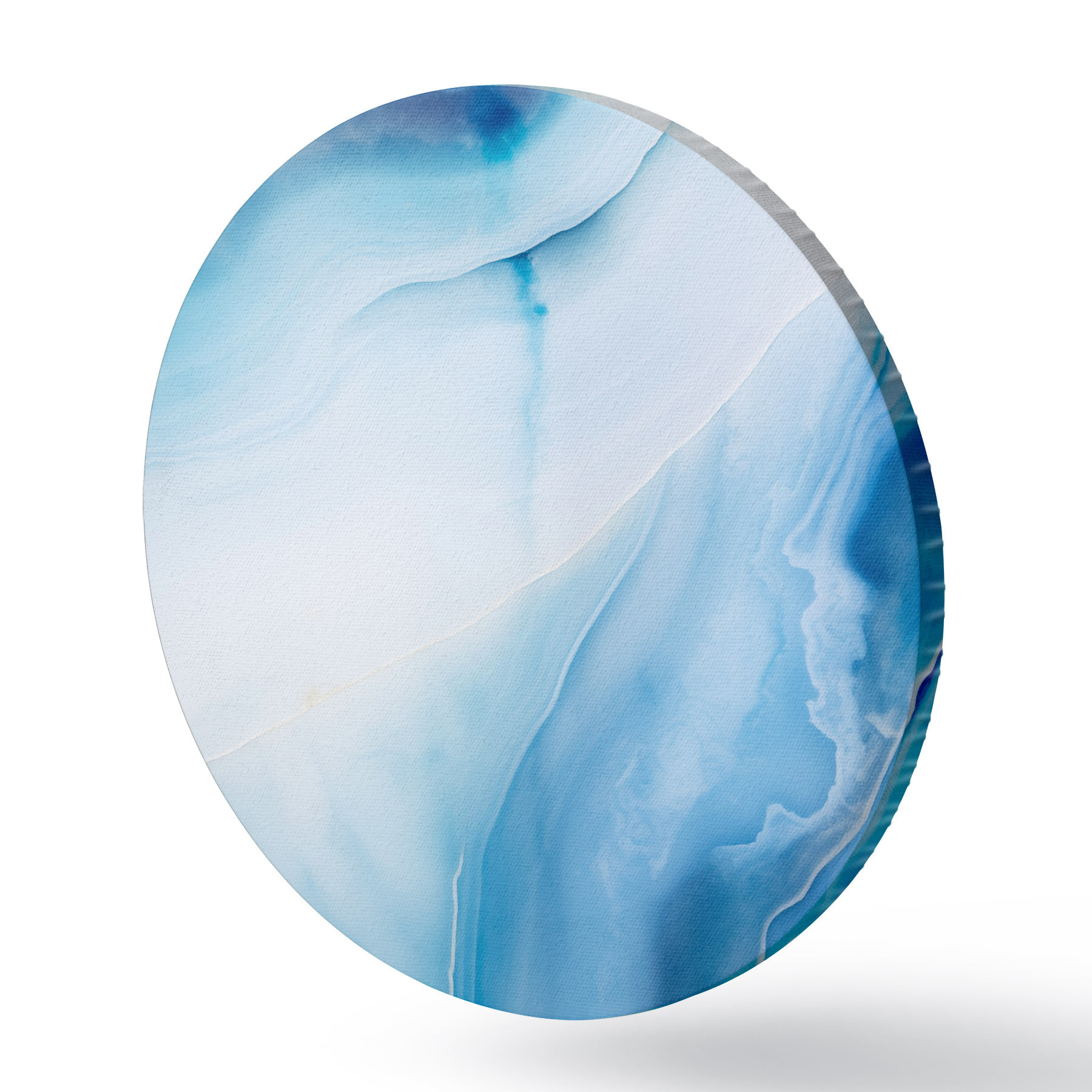 Runde Gemälde Abstrakter blau-weißer Achatdruck, wirbelnde Linien und Farbverläufe, glatte Textur, moderne Kunst, minimalistisch r46291