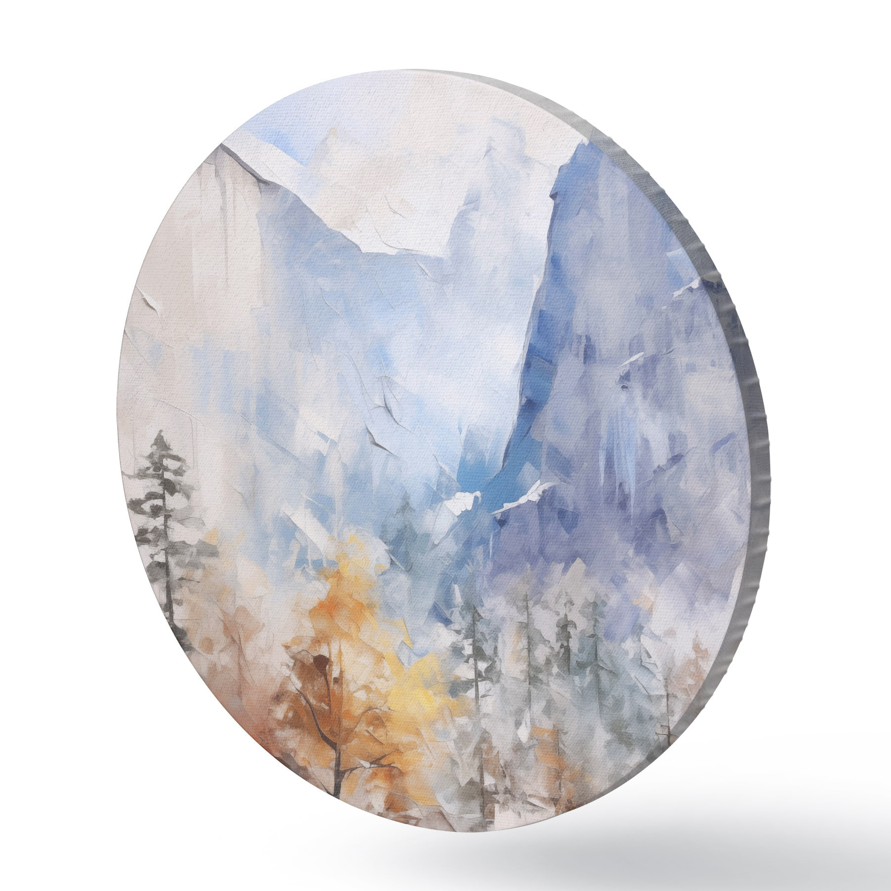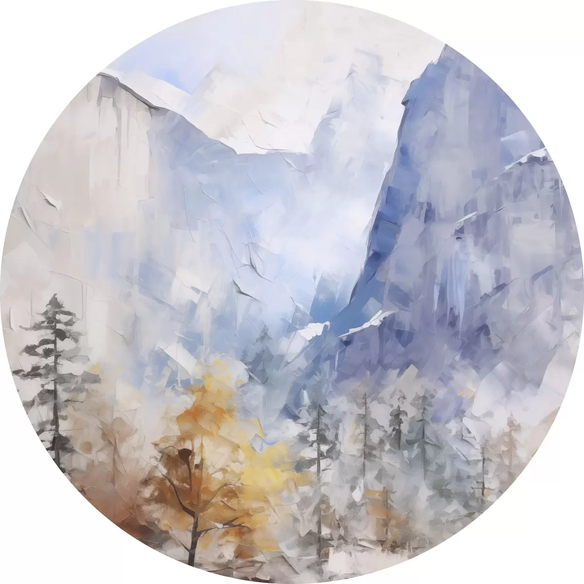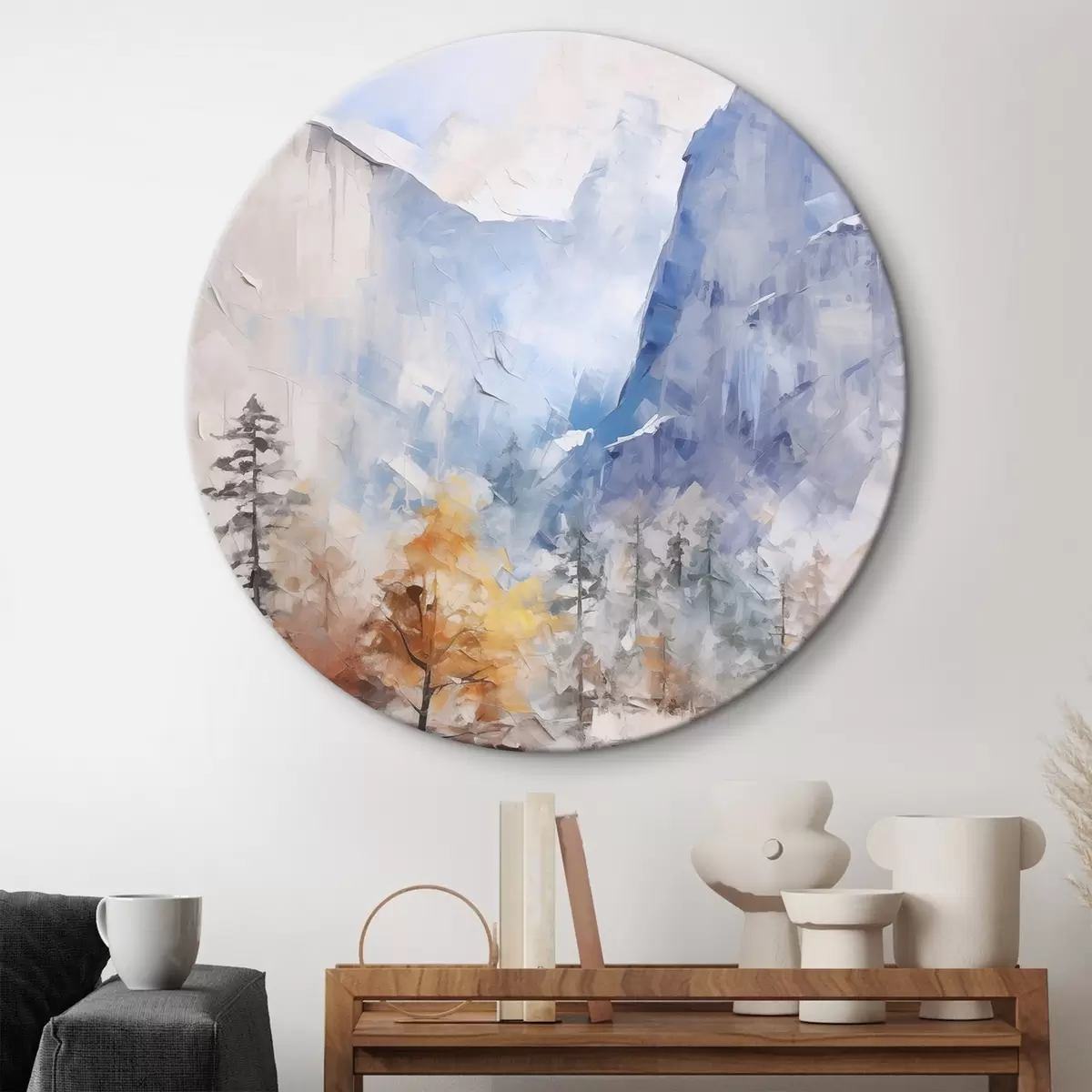 Runde Gemälde Abstrakte Landschaft mit Wald vor Bergen r46298