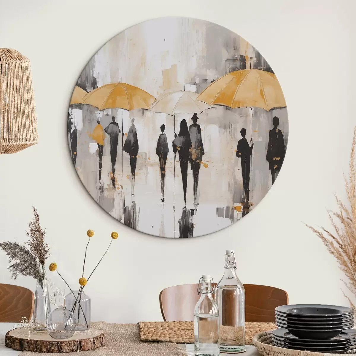 Runde Gemälde Abstraktion von Menschen mit Regenschirmen r46304