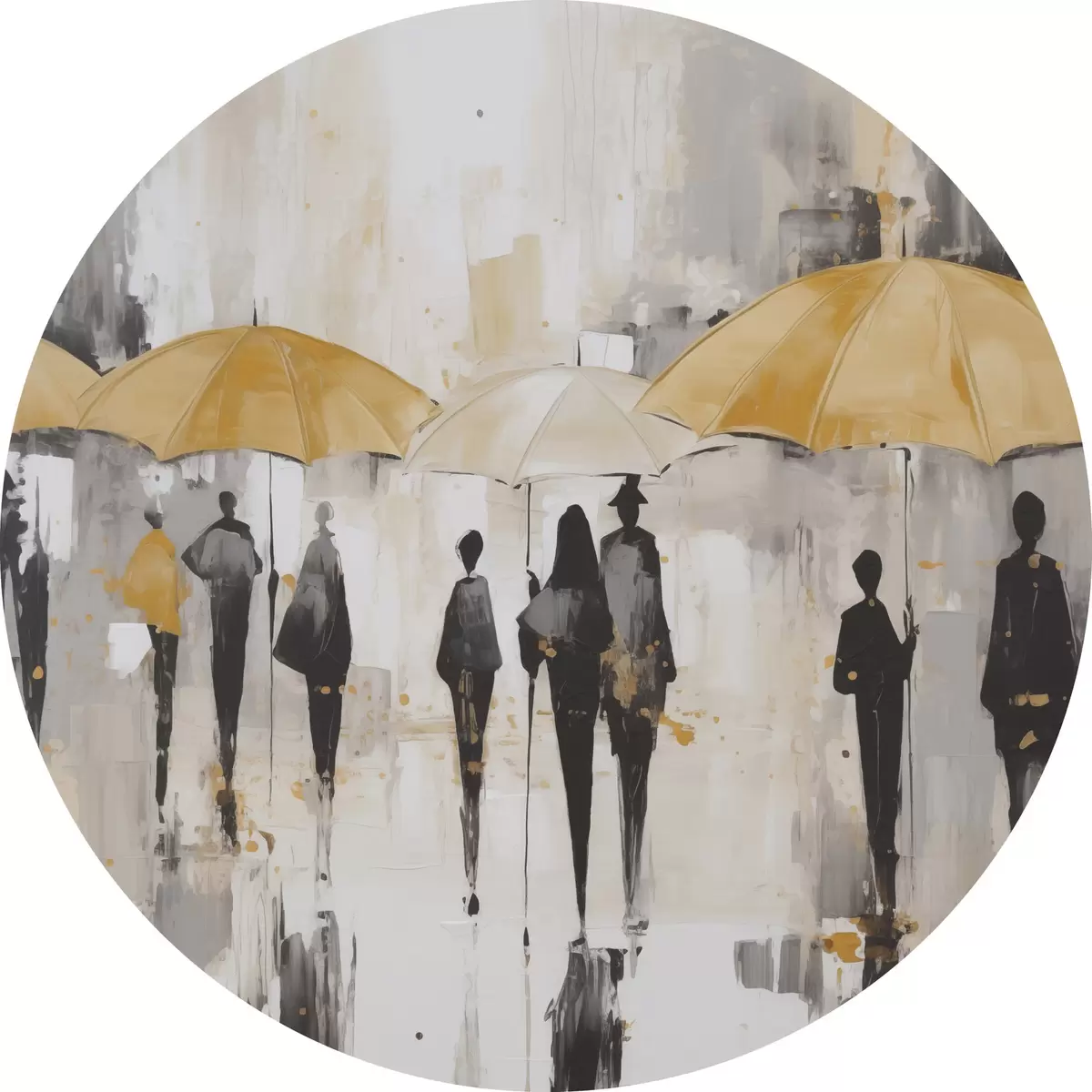 Runde Gemälde Abstraktion von Menschen mit Regenschirmen r46304