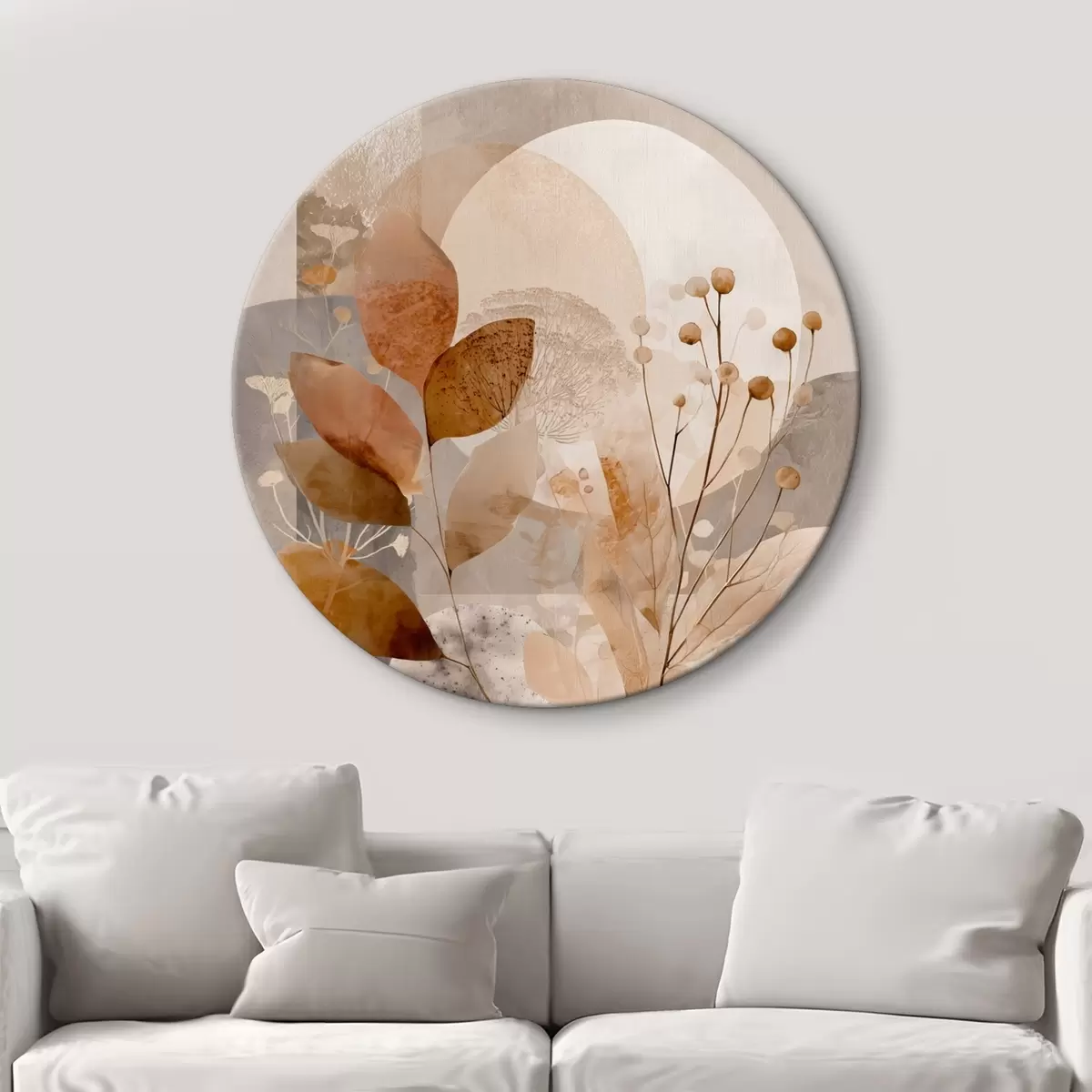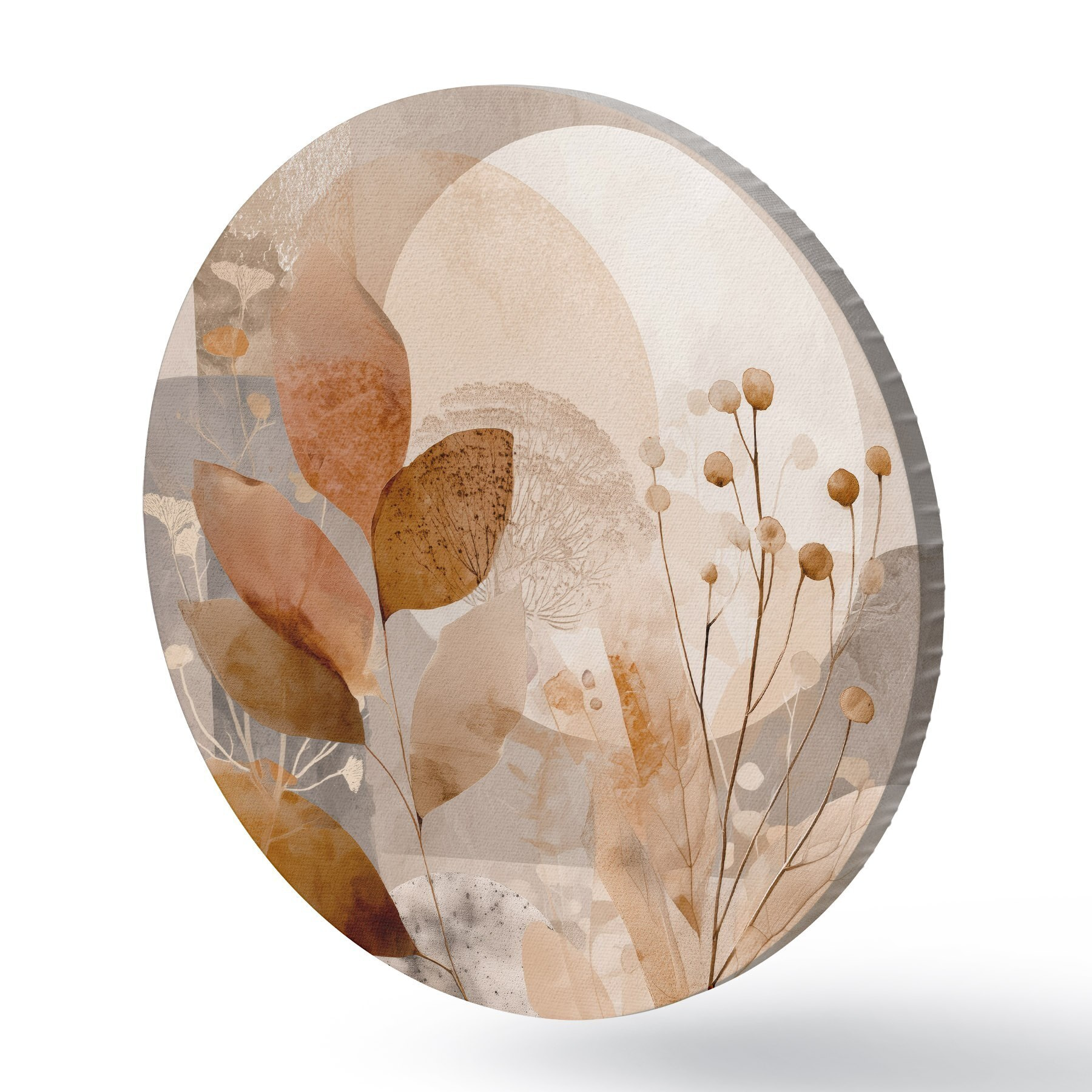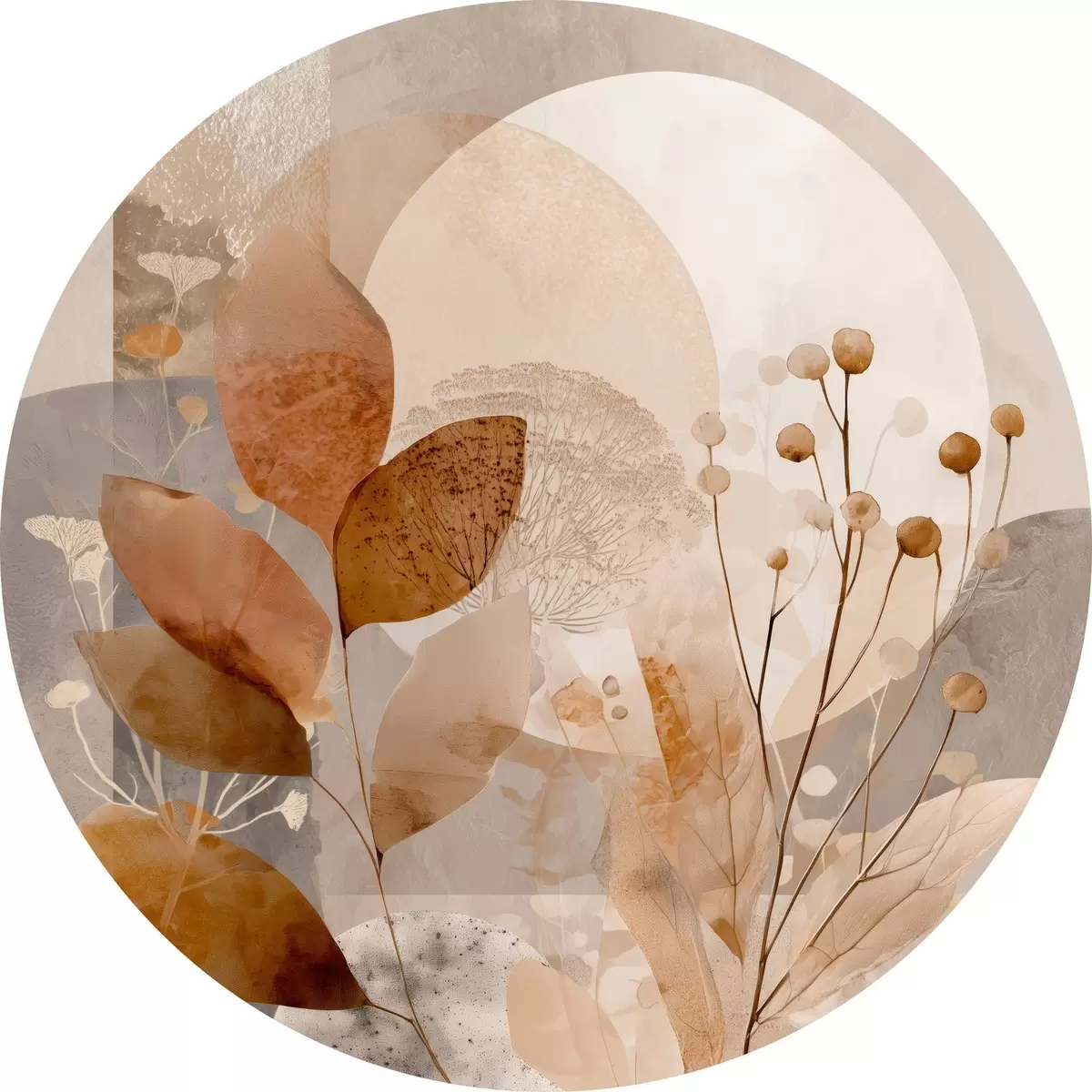 Runde Gemälde Blumenmuster in Beige und Braun r46308