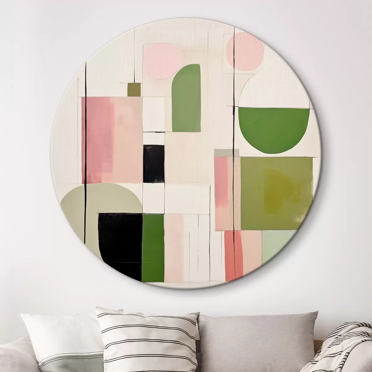 Runde Gemälde Abstrakte Kunst mit bunten Blöcken und Linien r46313