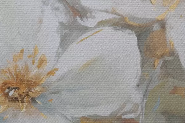 Das feine Fadengeflecht auf dieser Leinwand ähnelt der Oberfläche von professionellen Künstlerleinwänden.