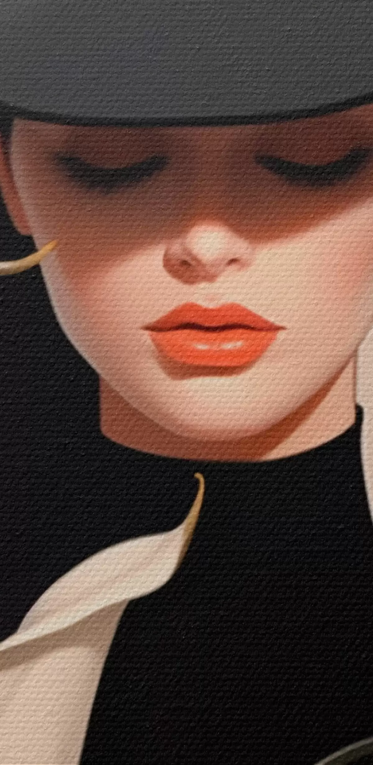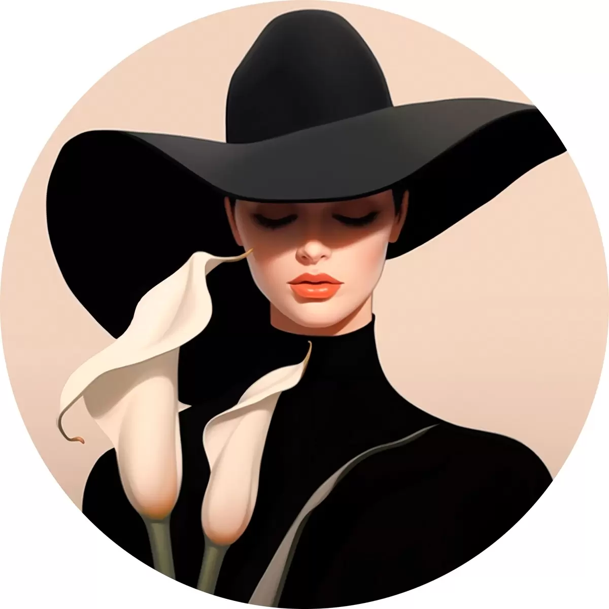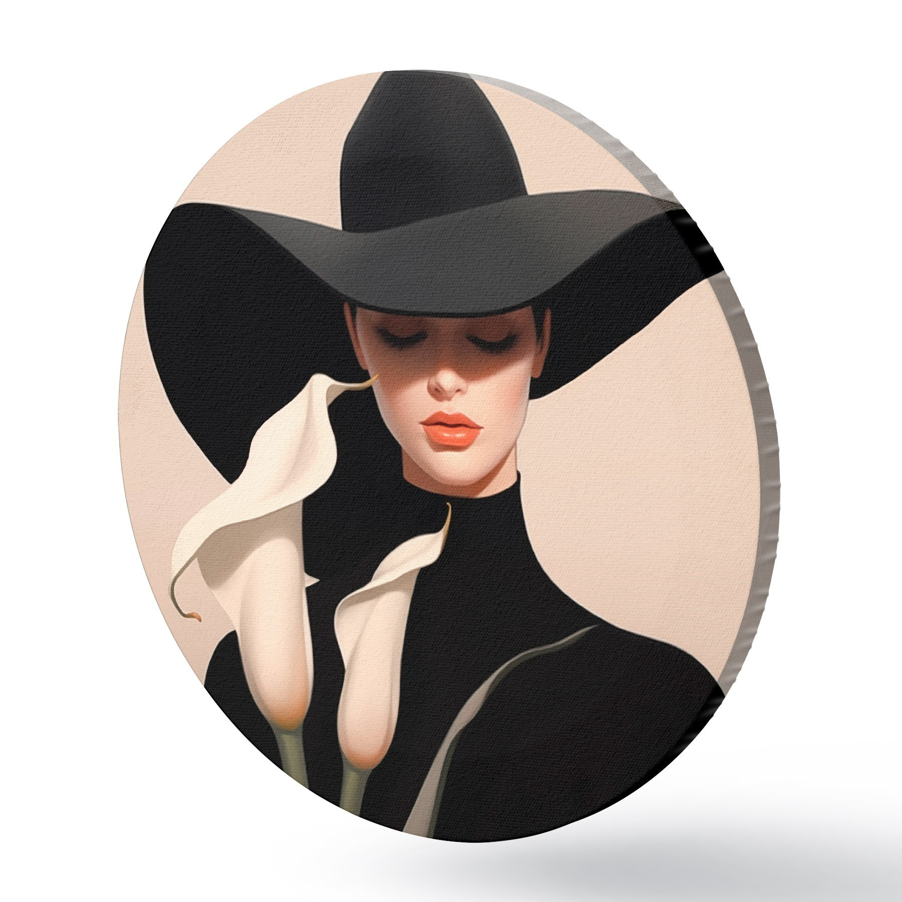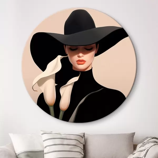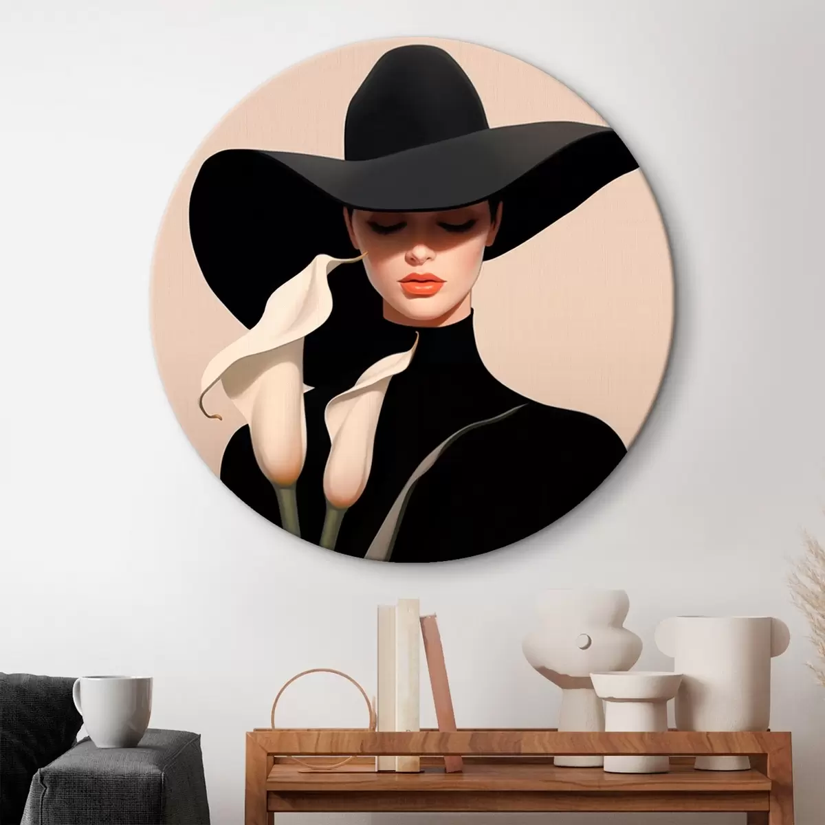 Runde Gemälde Mädchen mit Hut und Calas r46420