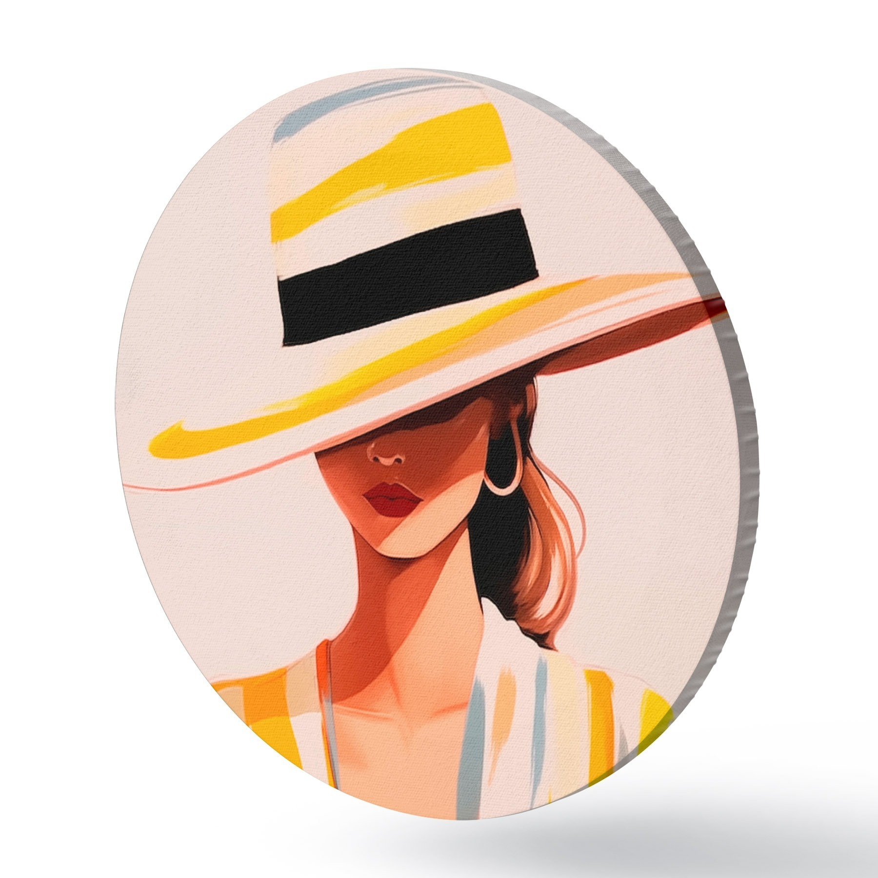 Runde Gemälde Mädchen mit Hut r46421