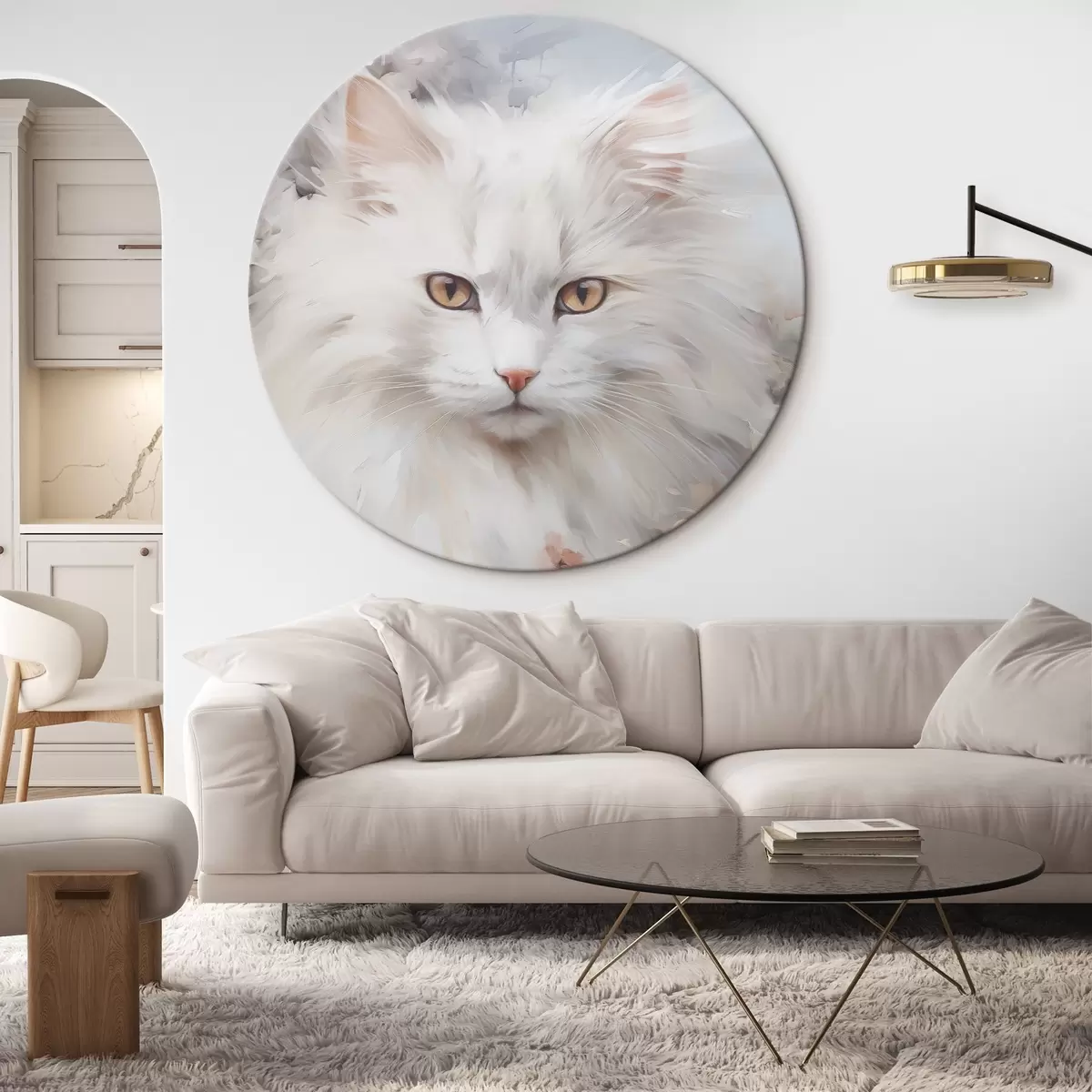Runde Gemälde Flauschige Katze r46443