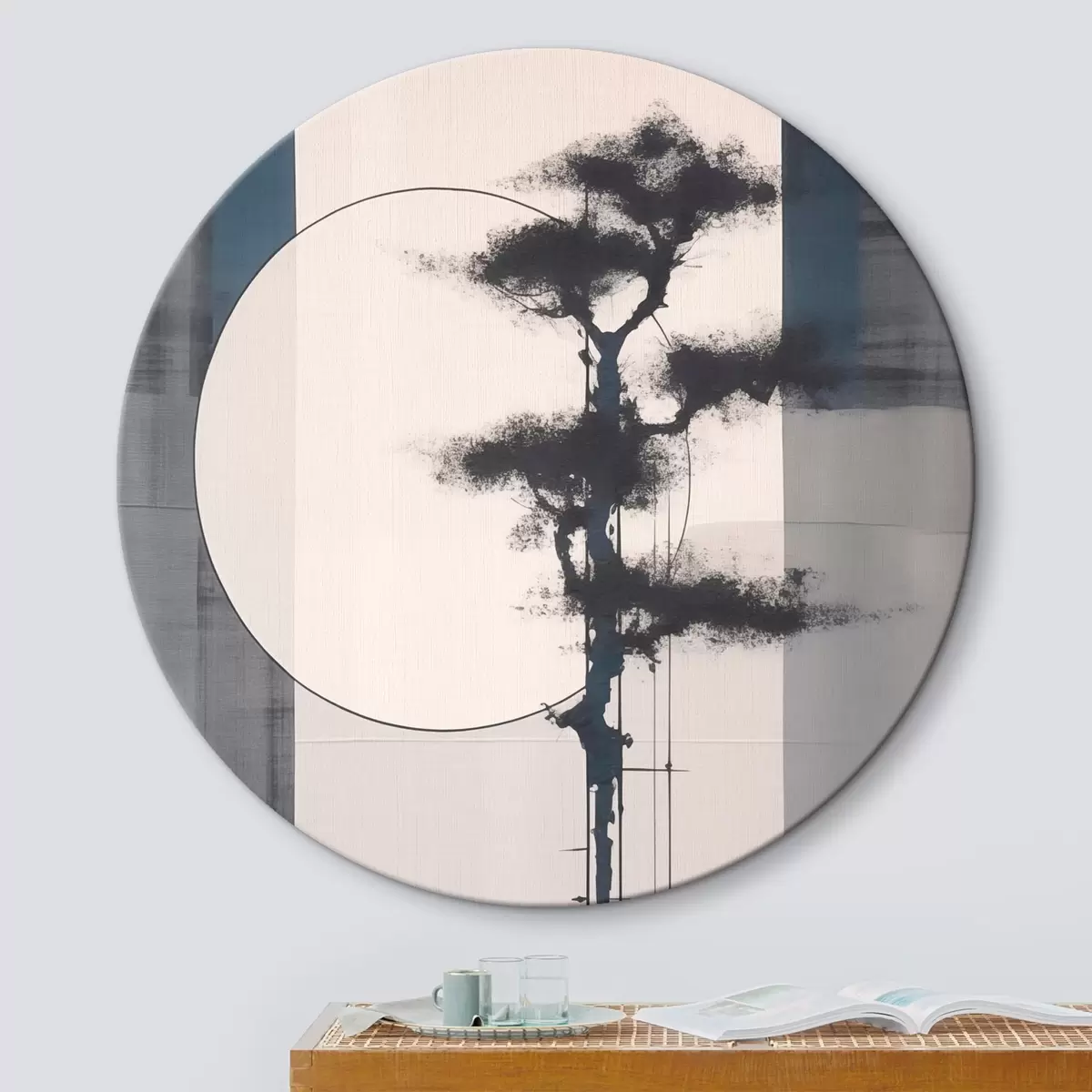 Runde Gemälde Abstraktion. Baum und Sonne. Japanischer Minimalismus r46463