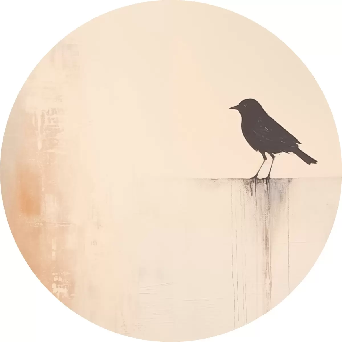 Runde Gemälde Vogelsilhouette. Abstrakter Minimalismus r46466