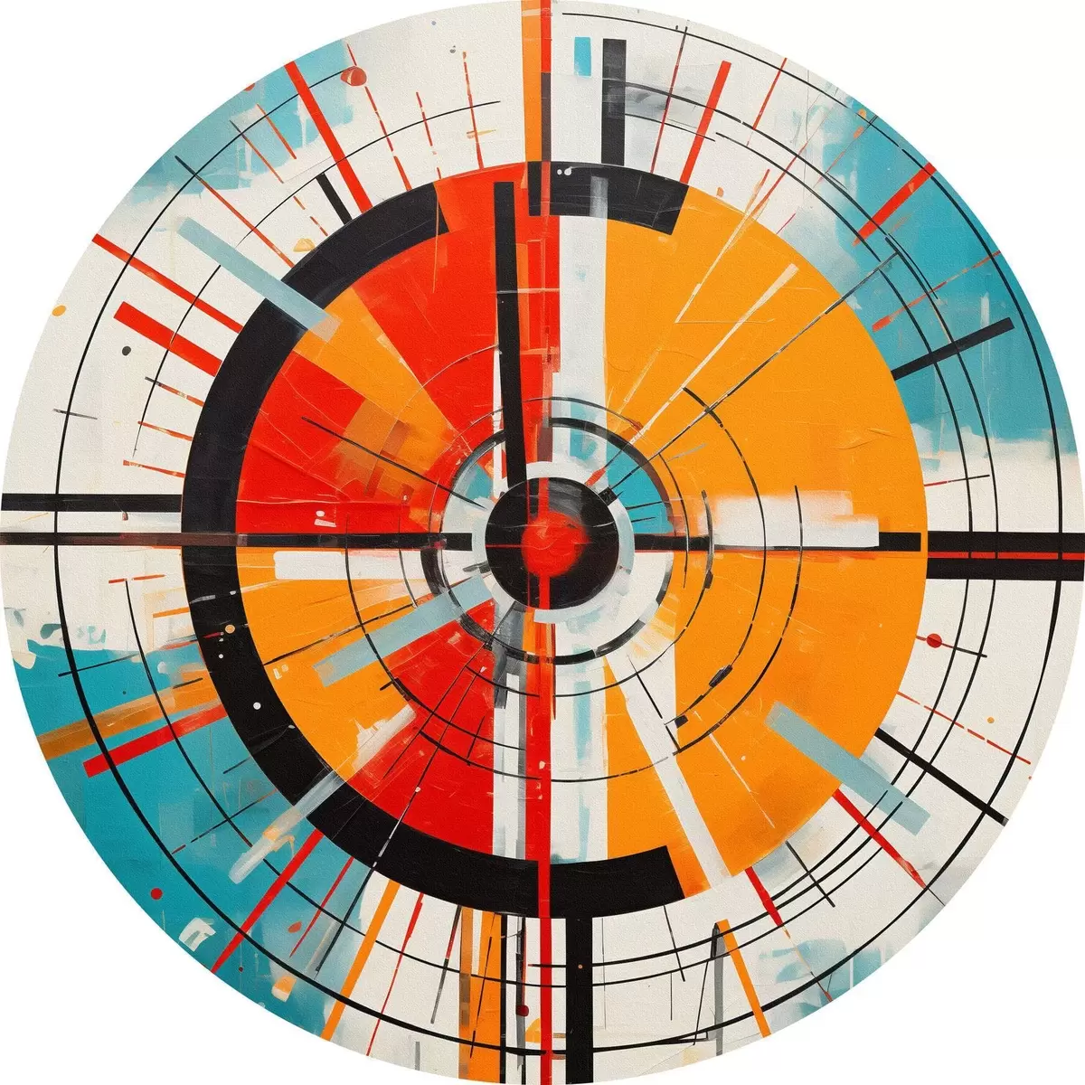 Runde Gemälde Konzentrisches Ziel mit blaugrünen und orangefarbenen Segmenten r46486