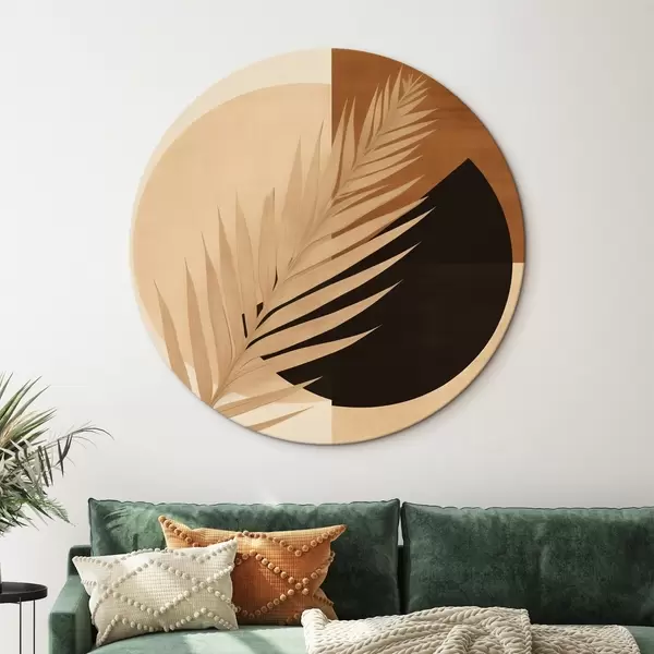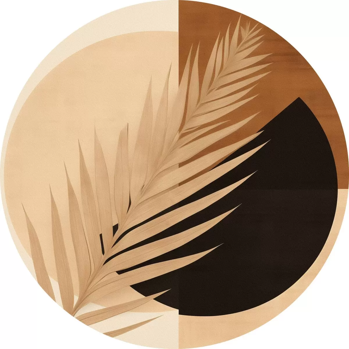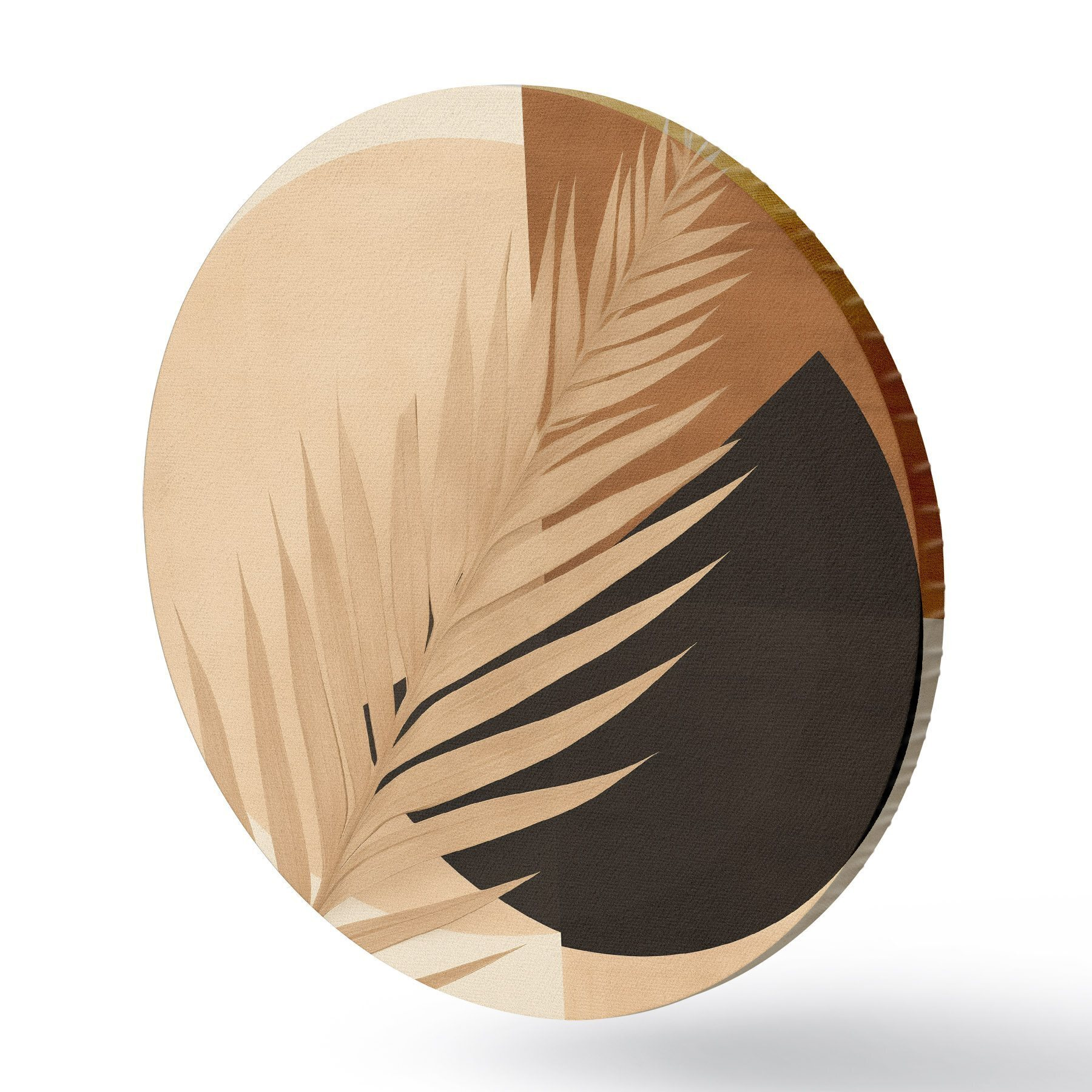 Runde Gemälde Palmwedel über Terrakotta und cremefarbener Geometrie r46490