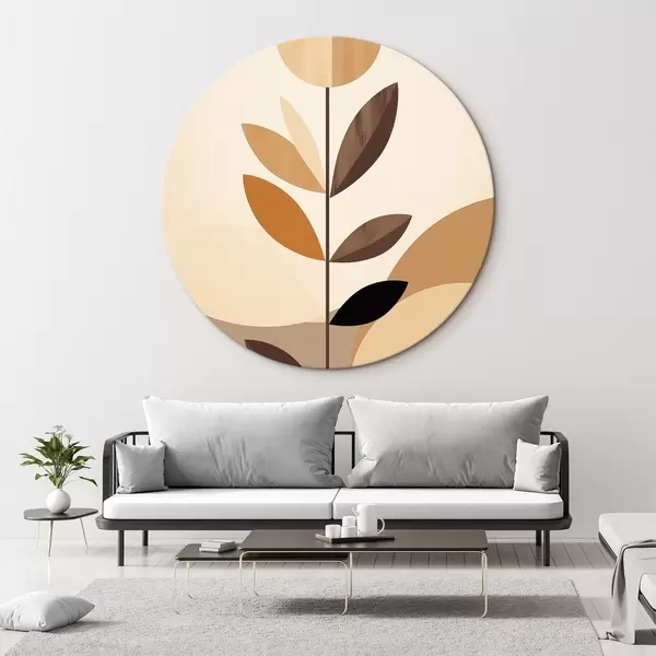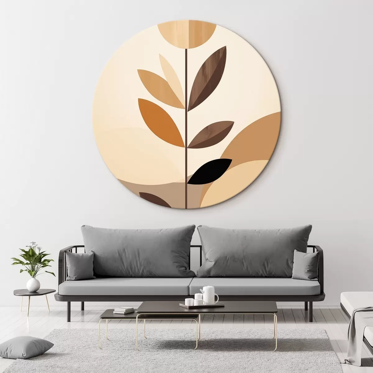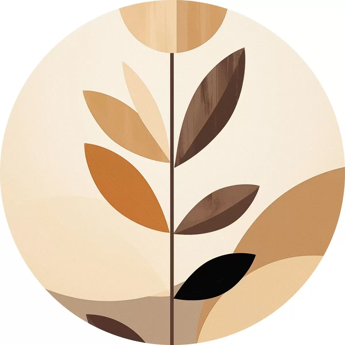 Runde Gemälde Stilisierte Blume mit geometrischen Blättern in warmen Farbtönen r46500