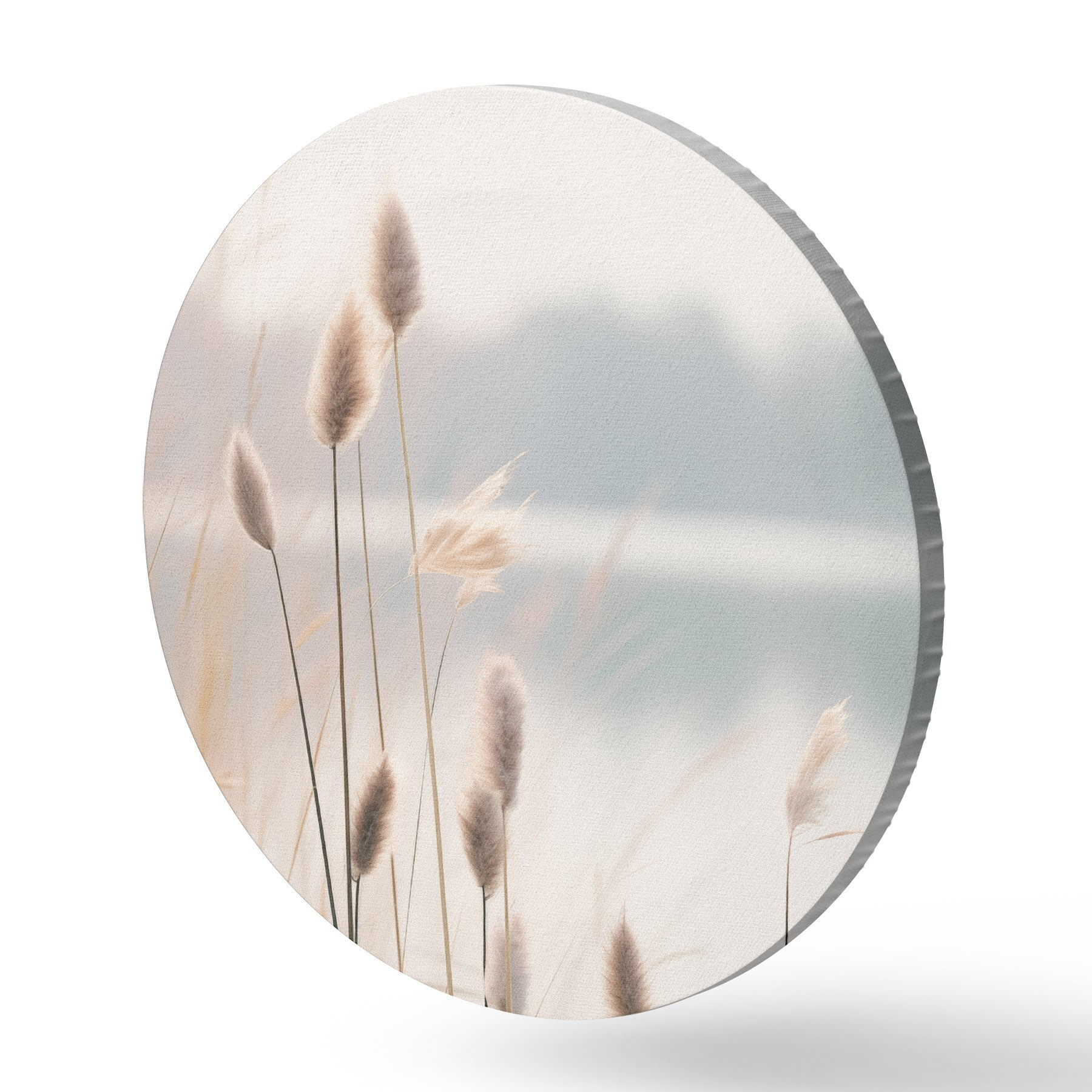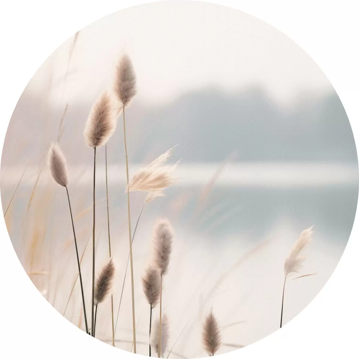 Runde Gemälde Weiche Schilfrohre an einem nebligen Seeufer, pastellbeige Farbtöne r46504