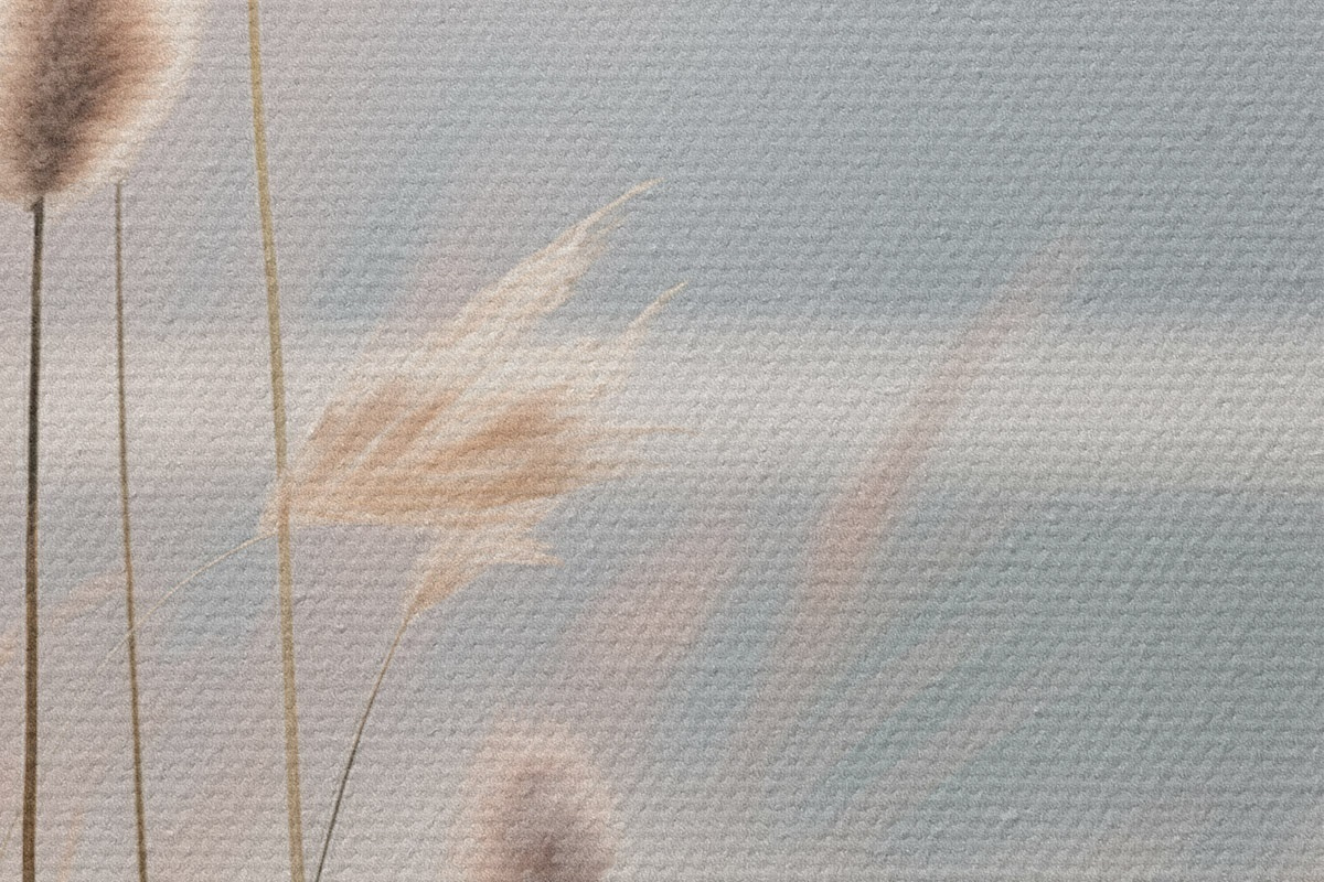 Bild Weiche Schilfrohre an einem nebligen Seeufer, pastellbeige Farbtöne Nr r46504