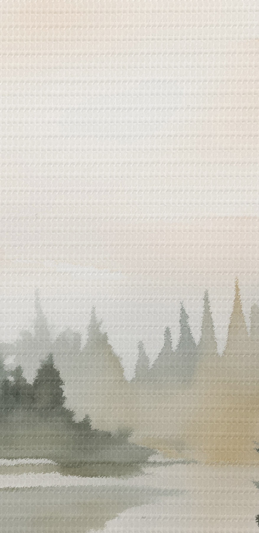Bild Nebelverhangener Nadelwald über einem ruhigen Fluss, Aquarellstil Nr r46507