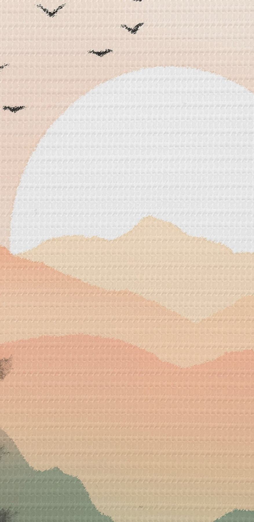 Runde Gemälde Pastellfarbener Sonnenuntergang über einem ruhigen See mit fernen Hügeln und Vögeln r46508