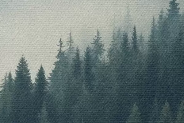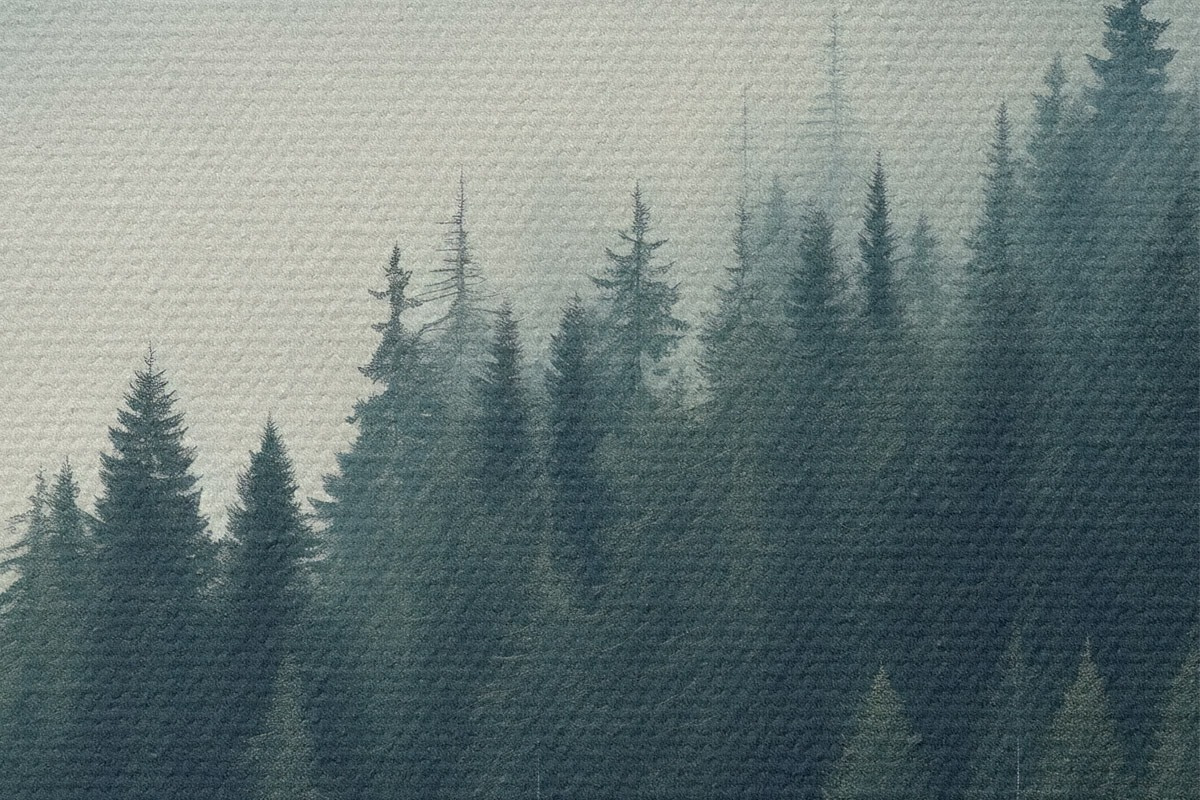 Bild Nebel über Nadelbaumhängen, tiefe Grüntöne Nr r46516