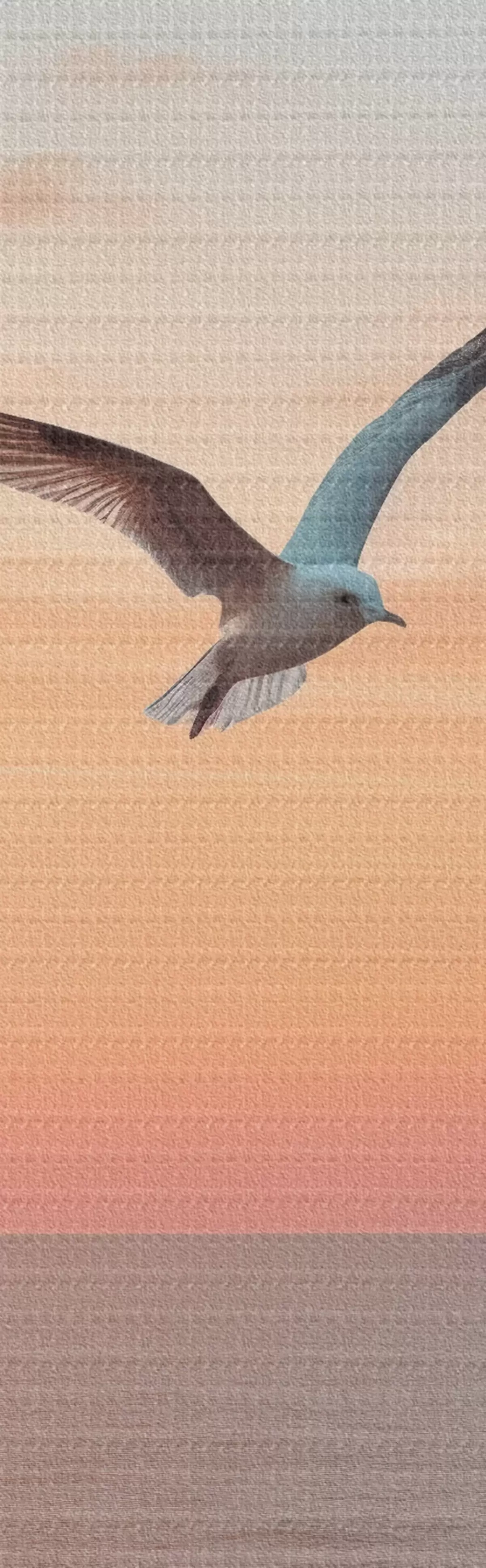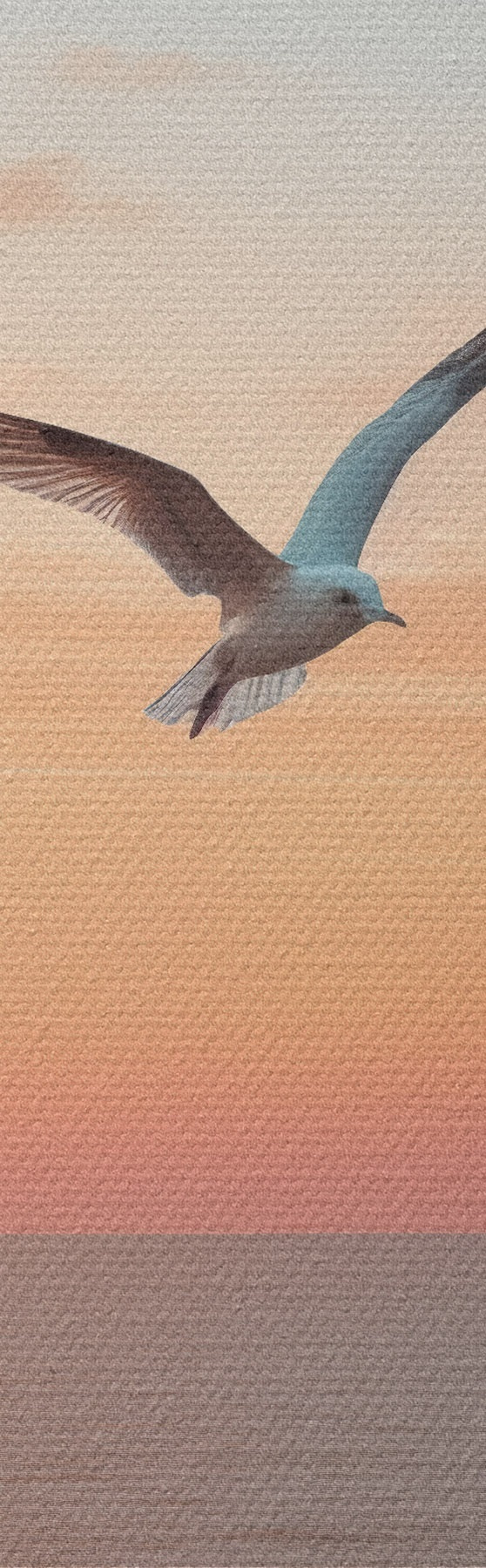 Bild Möwe über dem Meer bei einem rosa-pfirsichfarbenen Sonnenuntergang Nr r46520