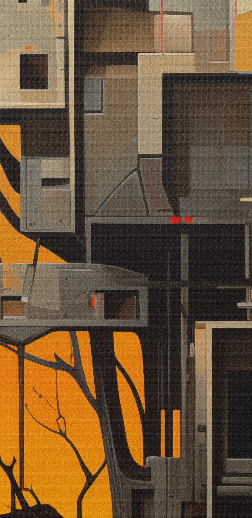 Bild Surreales Baumhaus vor orangefarbenem Hintergrund Nr r46526