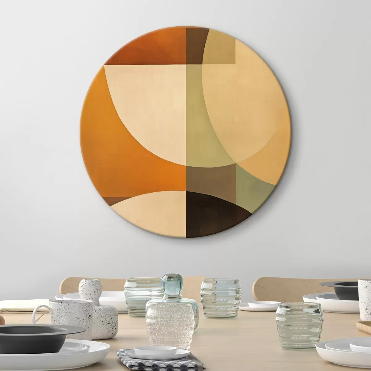 Runde Gemälde Große sich überschneidende Formen in Terrakotta-Olivtönen r46533