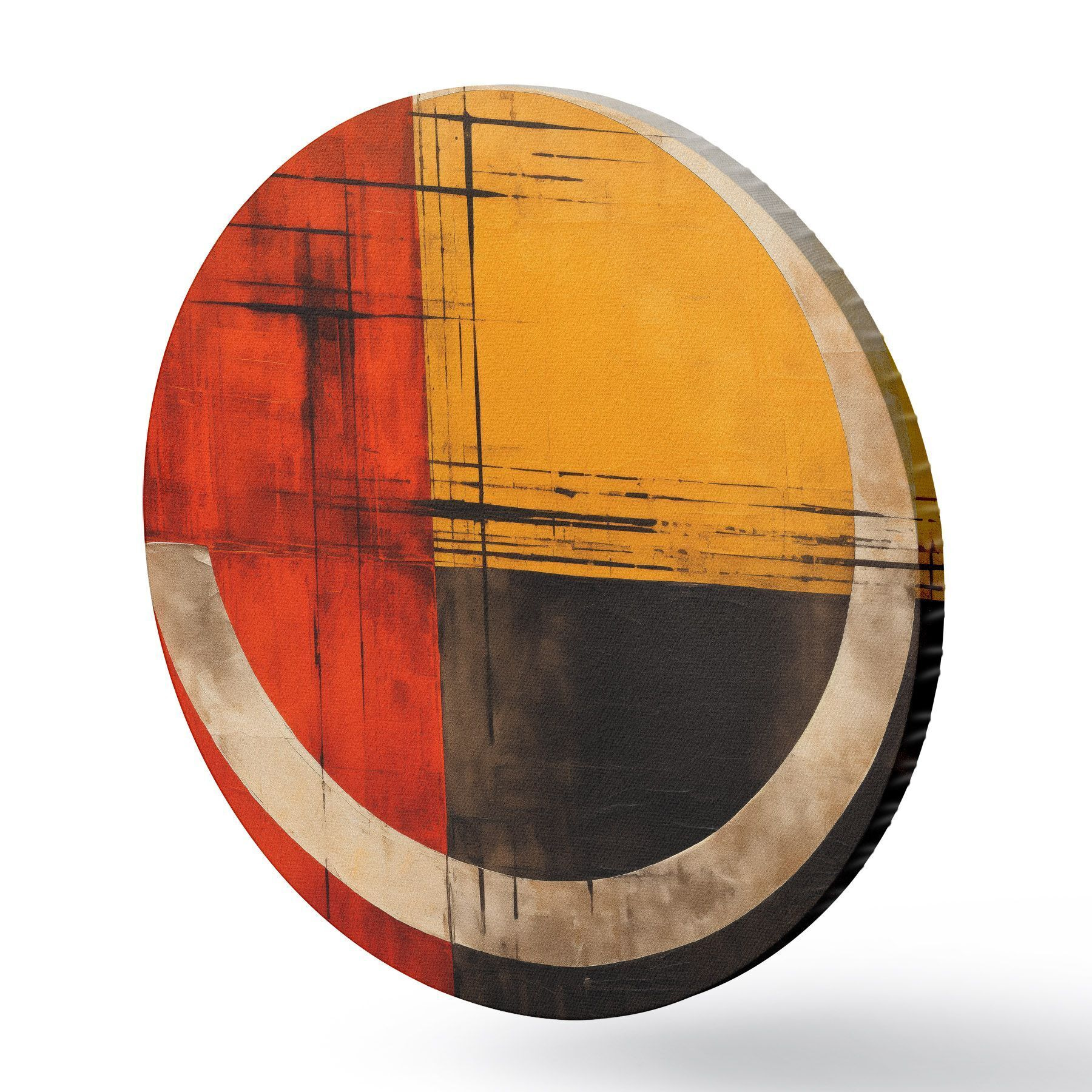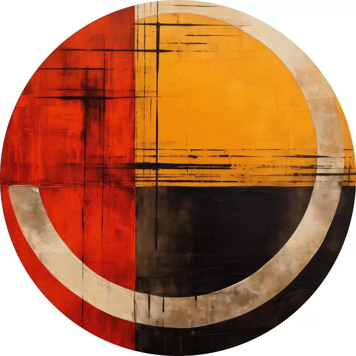 Runde Gemälde Abstrakter Kreis auf rot-schwarzem Hintergrund mit Linien r46535