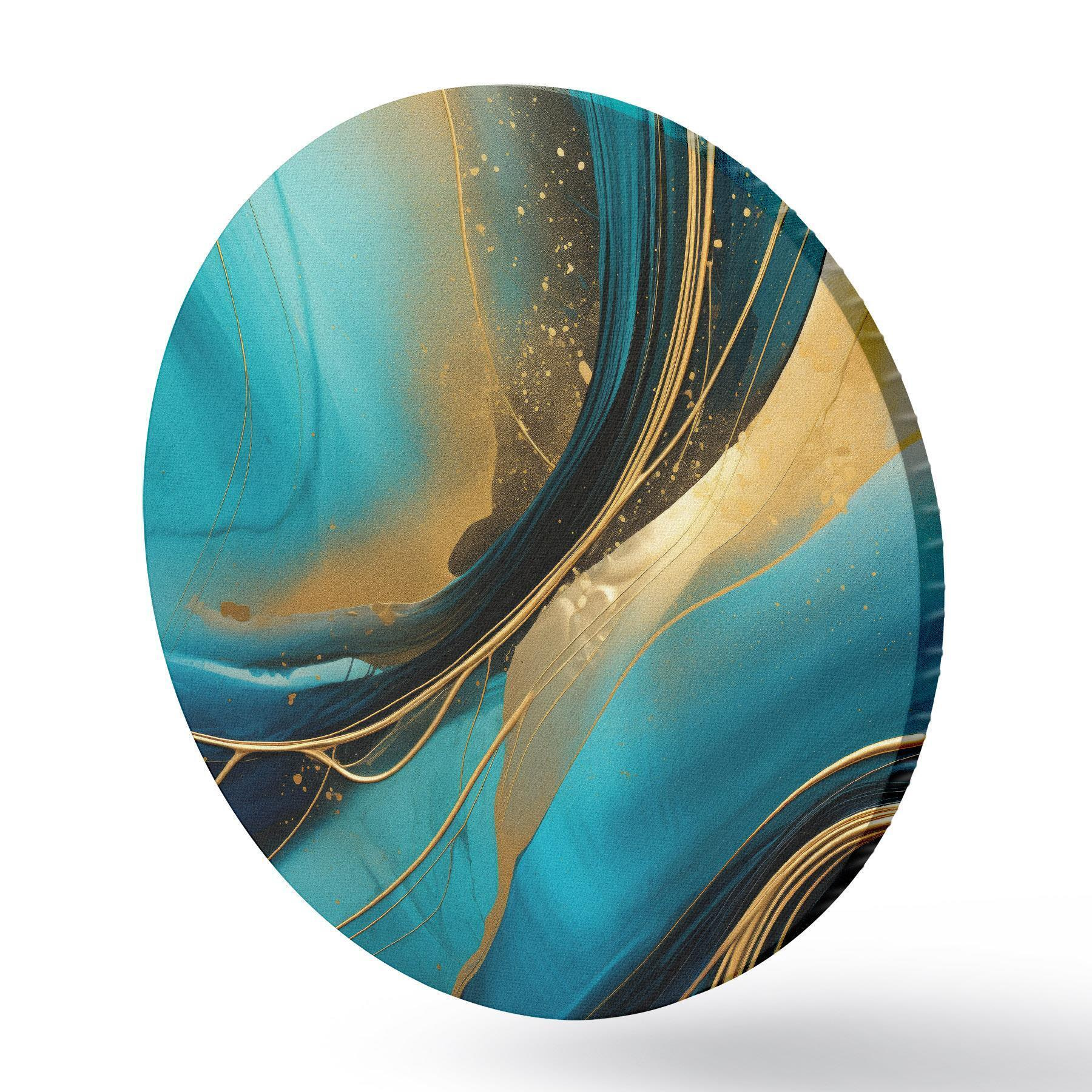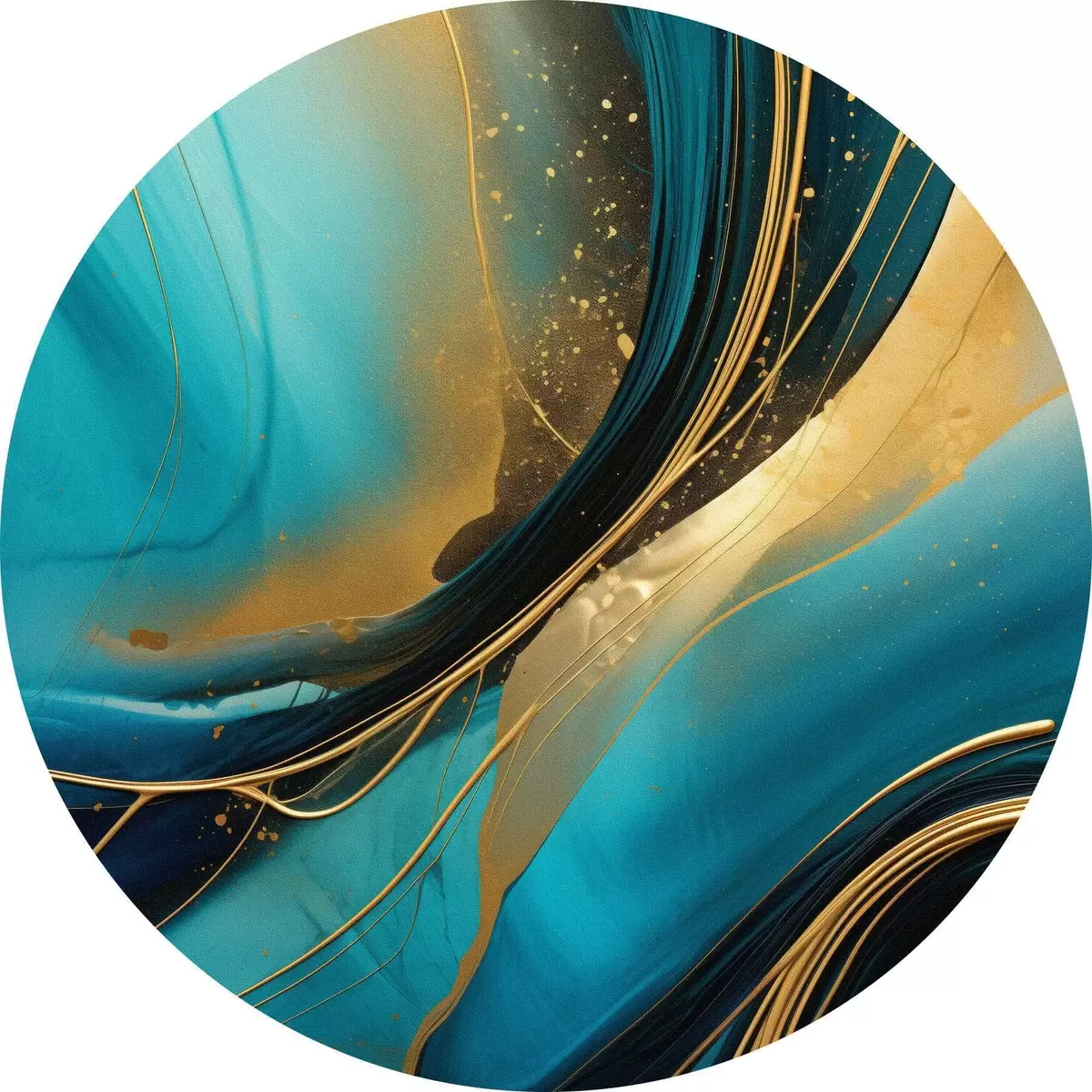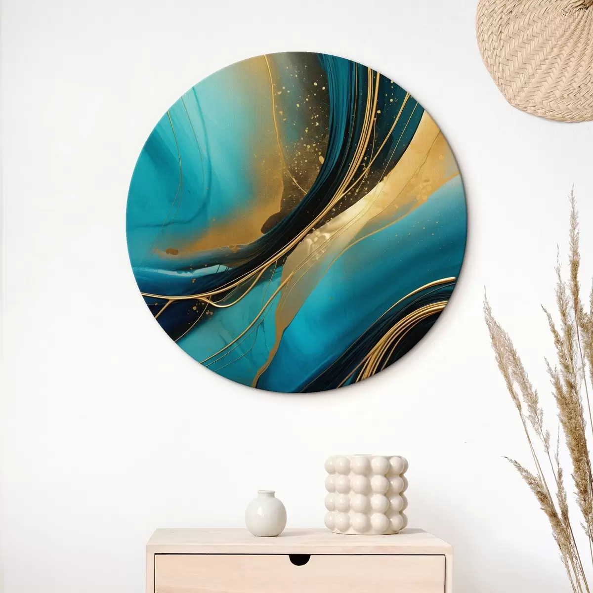 Runde Gemälde Türkisfarbener Fluss mit dünnen ockerfarbenen Fäden r46543