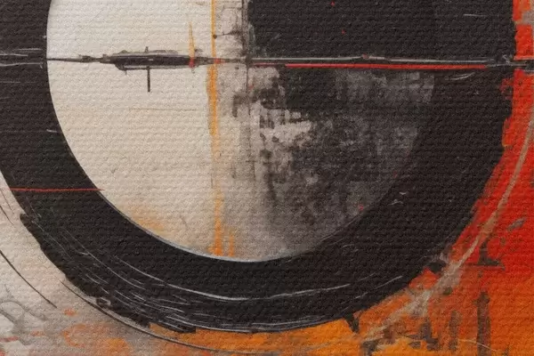 Bild Schwarzer Kreis auf weißem Hintergrund, orangefarbene Striche und Spritzer Nr r46549