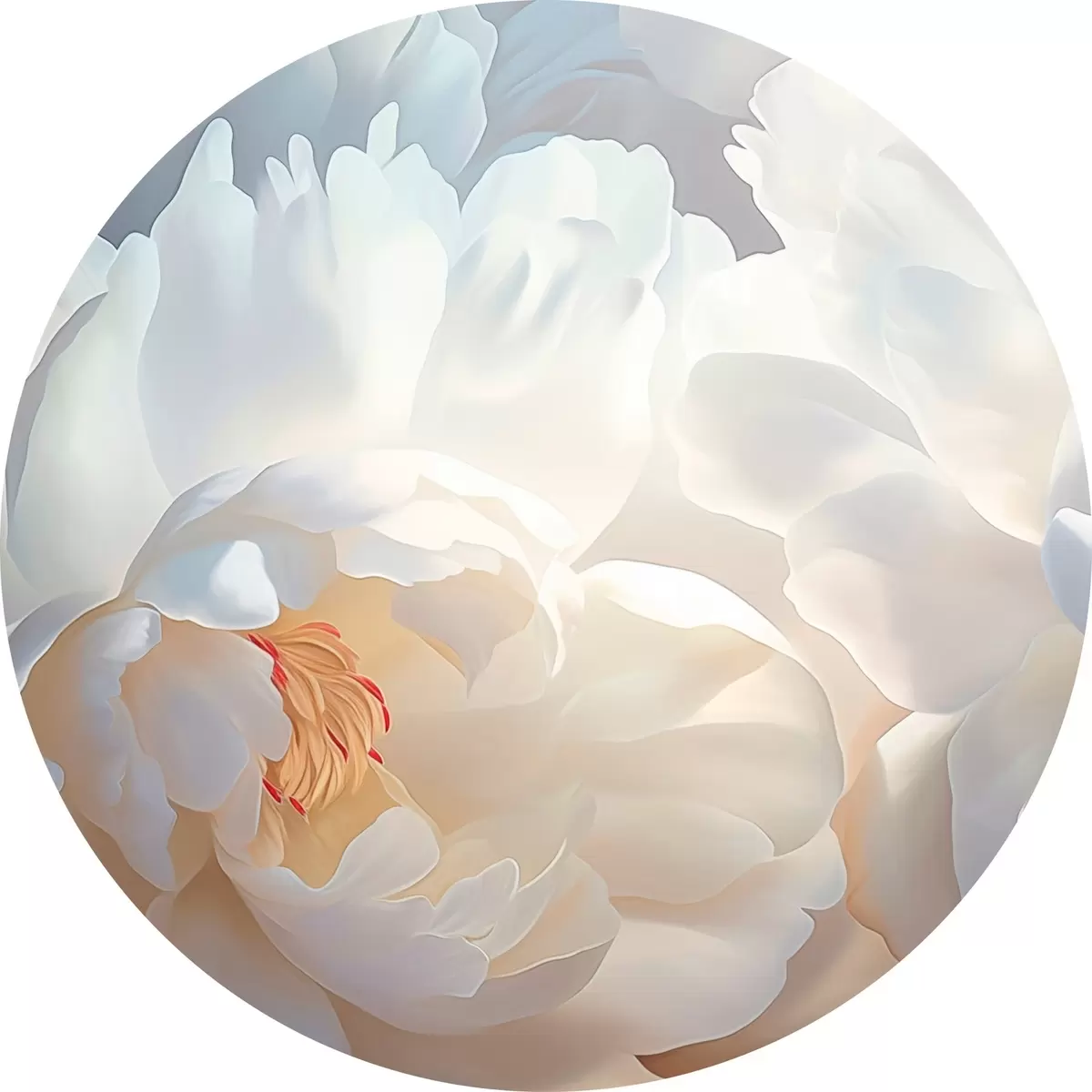 Runde Gemälde Große weiße Pfingstrosen r46560