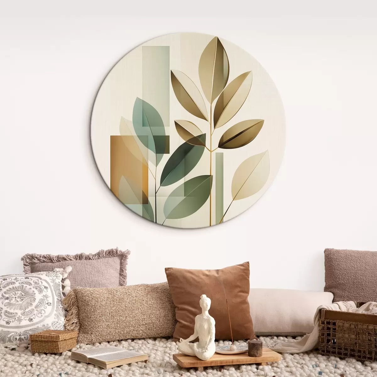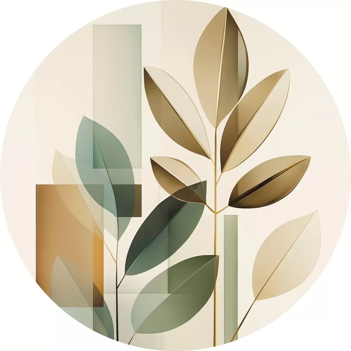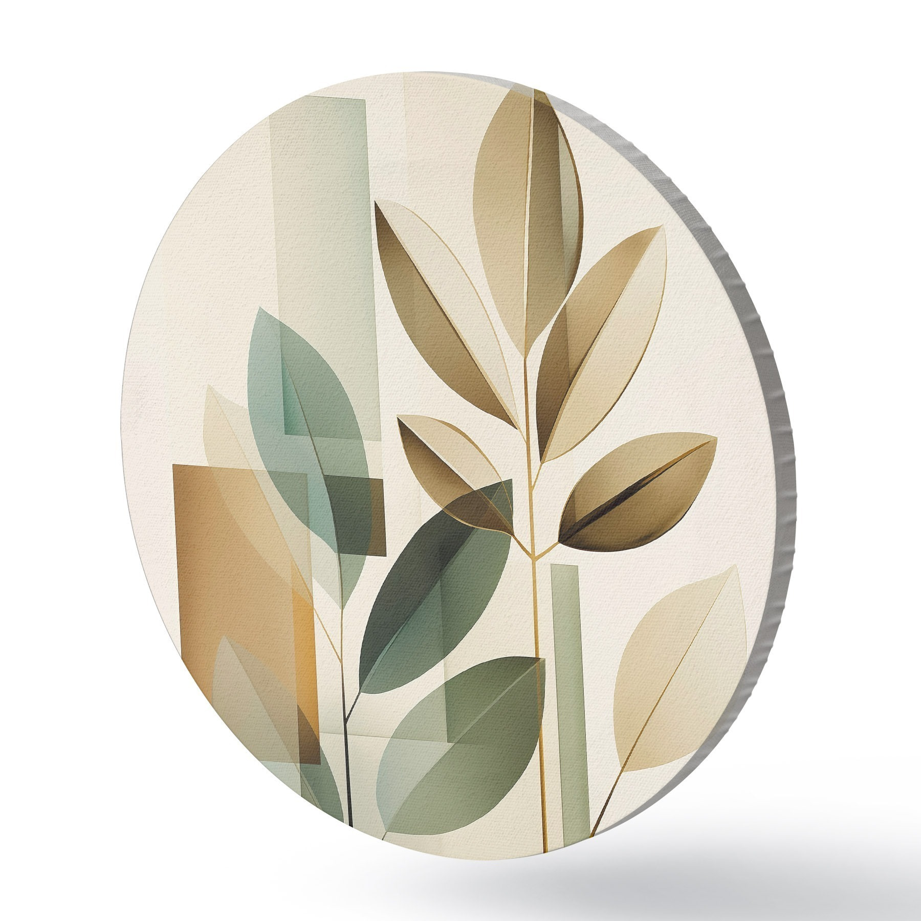 Runde Gemälde Geometrische Abstraktion mit Blättern r46581