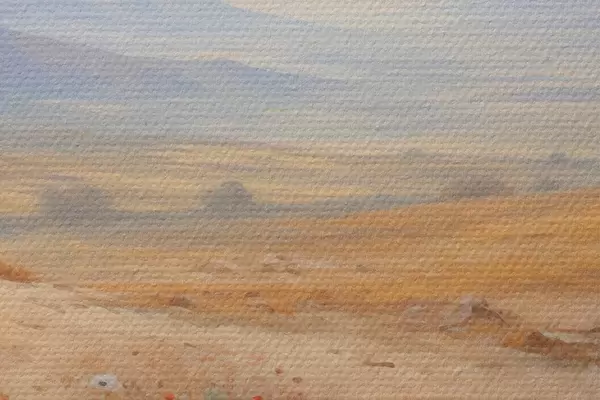 Das feine Fadengeflecht auf dieser Leinwand ähnelt der Oberfläche von professionellen Künstlerleinwänden.