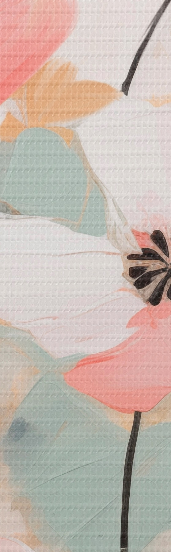 Runde Gemälde Rosa und schwarze Blumen mit Blättern, sanfte Pastellfarben, abstraktes Blumenarrangement, minimalistische Kunst r46688