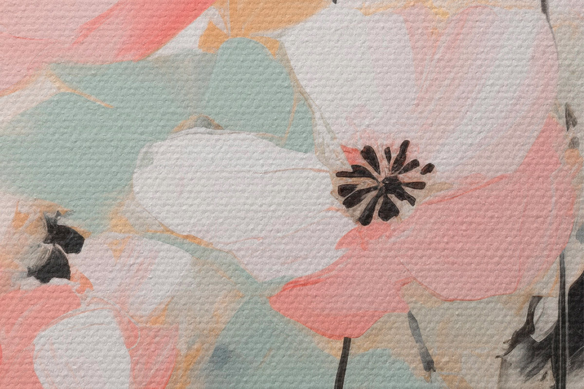 Bild Rosa und schwarze Blumen mit Blättern, sanfte Pastellfarben, abstraktes Blumenarrangement, minimalistische Kunst Nr r46688