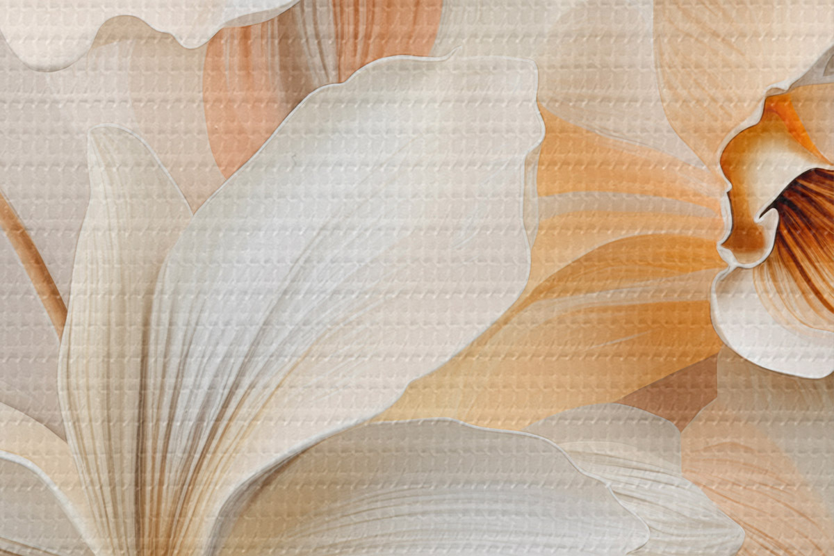 Bild Weiße Blumen, Blütenblätter mit sanften Schatten, hellbeiger Hintergrund, elegante Komposition, minimalistischer Stil Nr r46699
