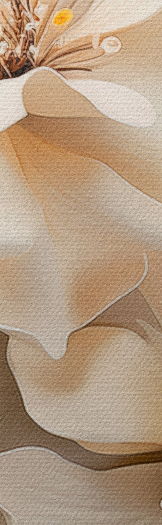 Runde Gemälde Weiße Blumen, Blütenblätter mit sanften Schatten, hellbeiger Hintergrund, elegante Komposition, minimalistischer Stil r46700