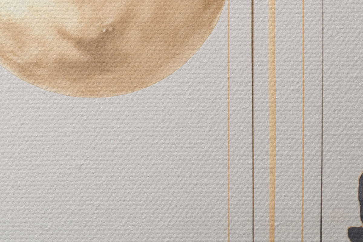 Bild Vollmond mit schwarzen und strukturierten gelben Wolken, vertikalen Linien, abstrakter Stil, minimalistisch und modern Nr r46707