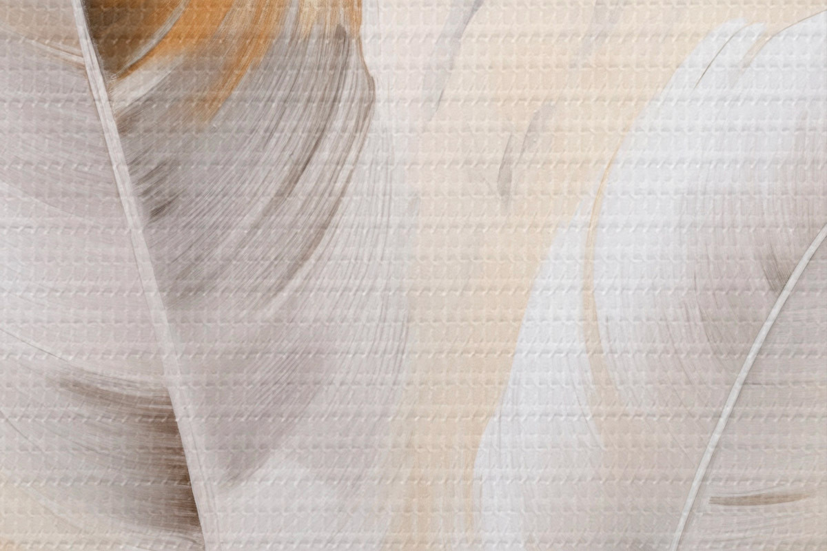 Bild Abstrakte Federn, umgeben von beigen und braunen Federn, weich und zart, auf hellbeigem Hintergrund Nr r46711