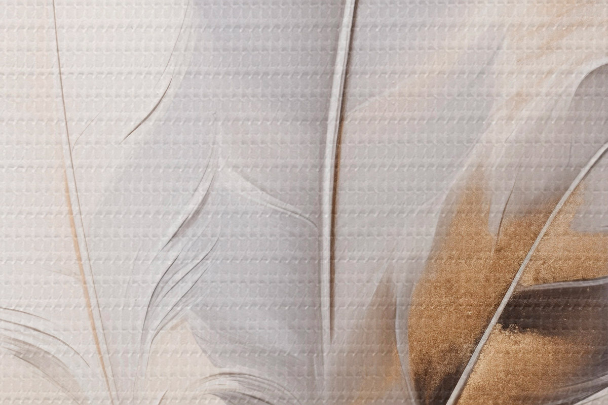 Bild Abstrakte Federn, umgeben von beigen und braunen Federn, weich und zart, auf hellbeigem Hintergrund Nr r46712