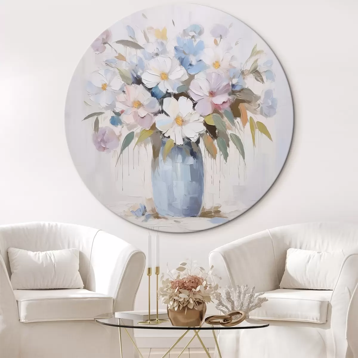 Runde Gemälde Blumen in einer Vase – Imitationsgemälde r46714