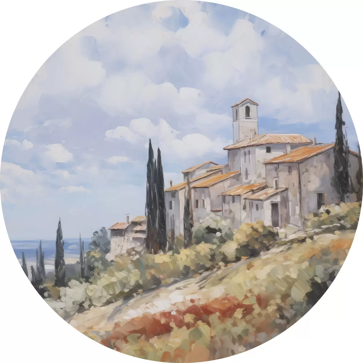Runde Gemälde Imitation einer ländlichen Landschaft in der Malerei r46716