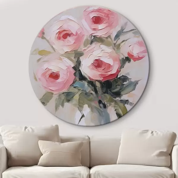 Runde Gemälde Rosen in einer Vase, Imitationsgemälde r46742