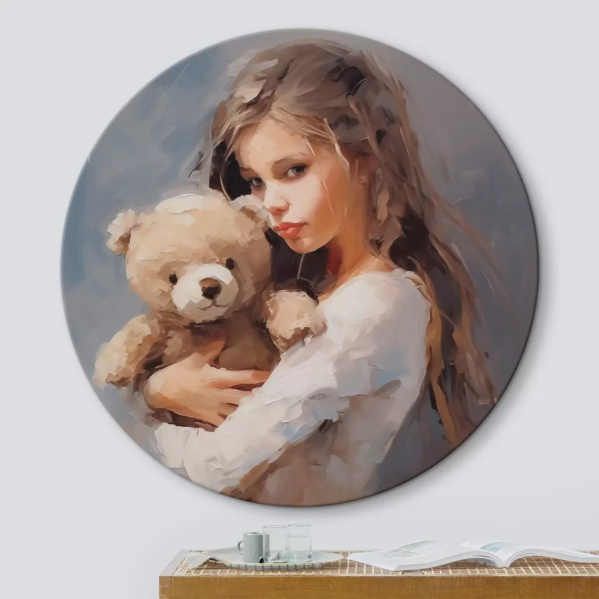 Runde Gemälde Mädchen mit einem Spielzeugbären, Gemäldeimitation r46746