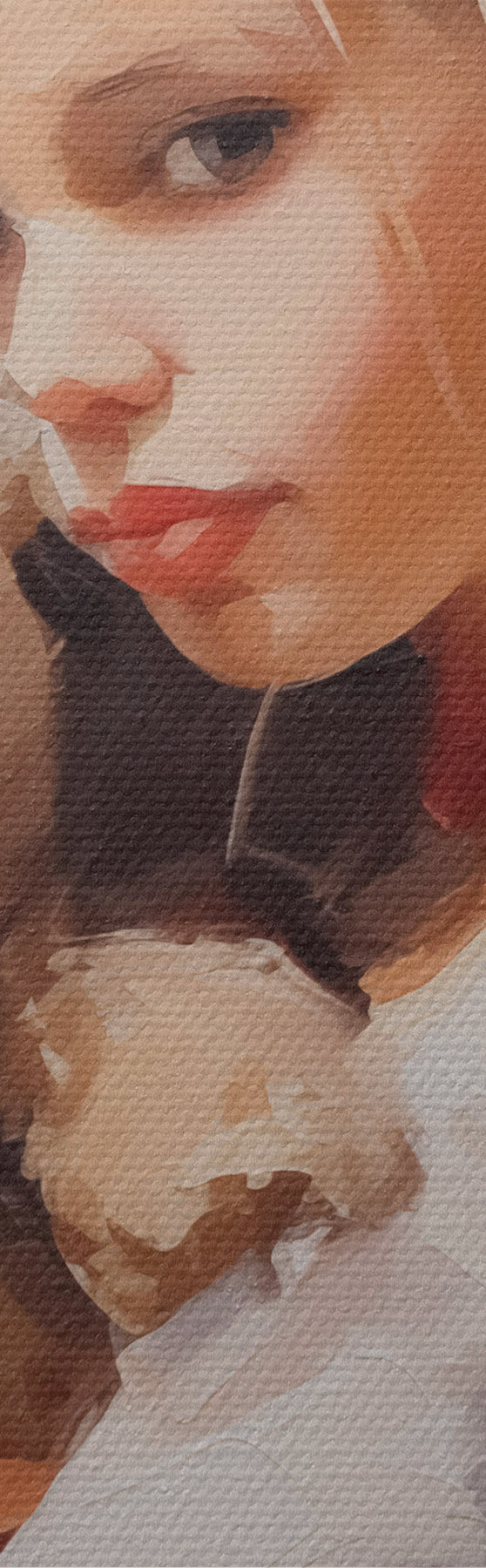 Drei Materialtypen stehen zur Verfügung: Economic Canvas - ein dichtes und haltbares Material für den Digitaldruck, identisch mit Malerleinwand, wasserfeste Oberfläche, realistische Wiedergabe von Details, mittelkörniges Material. Premium Canvas - die Textur ähnelt der einer Malerleinwand (verwobene kleine Fäden). Weiche, detaillierte Wiedergabe des Bildes auf einer matten Oberfläche. Eco-Premium - hochwertiges Gewebe aus 100% Baumwolle. Dank der natürlichen Baumwollfasern ist das Material langlebig und verschleißfest. Hervorragende Farbwiedergabe und Detailtreue.